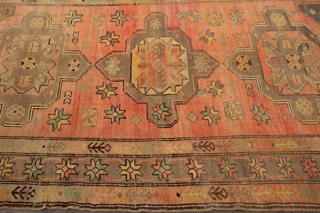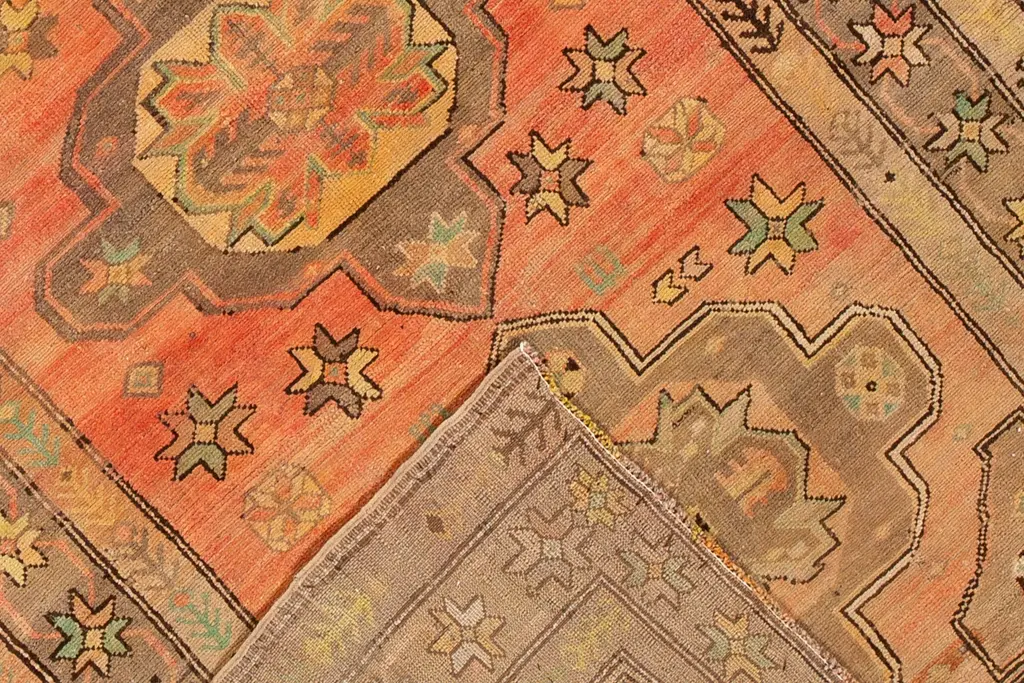 Beautiful antique Khotan rug, hand knotted wool with a rust orange field, tan accents in all-over multi medallion design, circa 1910. This rug measures 4' 5" x 7' 2".��Our Rugs are professionally cleaned before shipping.