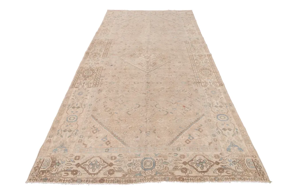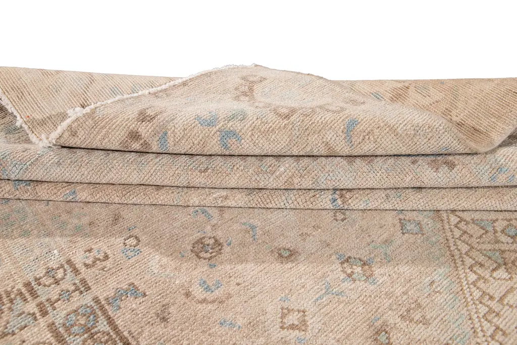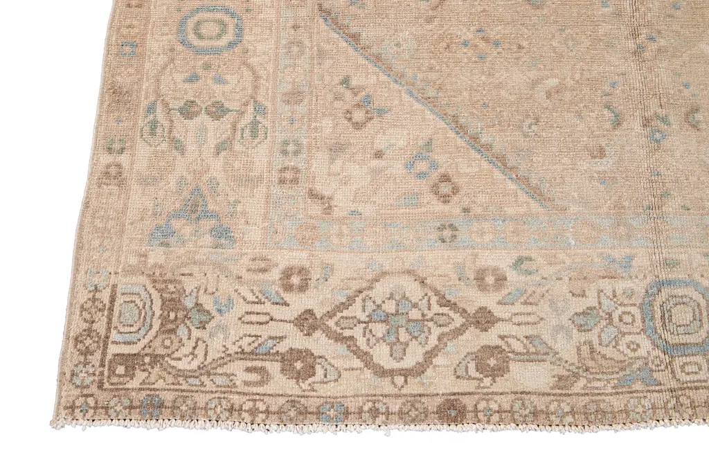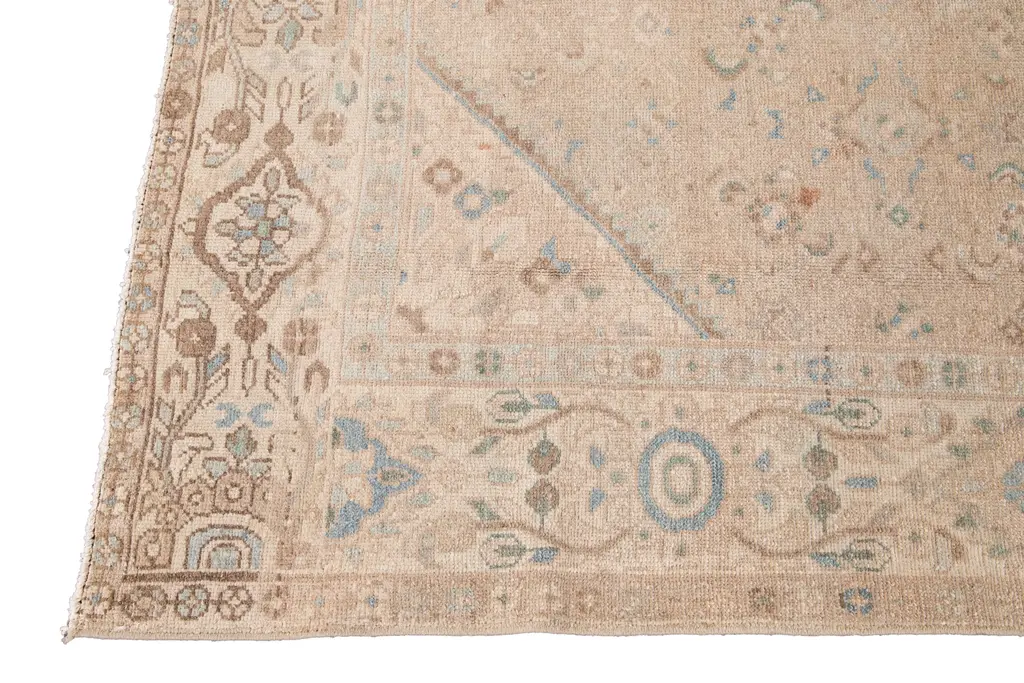 Beautiful vintage Mahal hand knotted with muted neutral tones wool rug with an ivory field, and multicolor accents in the all-over geometric Abrash design.This rug measures: 5'1" x 10'6".