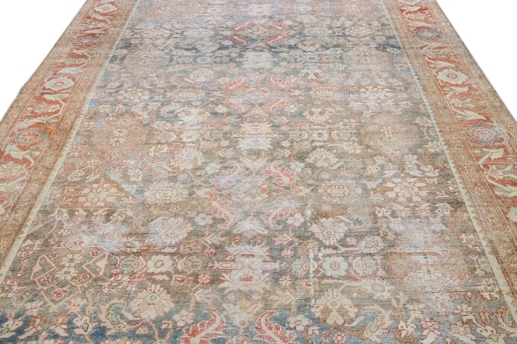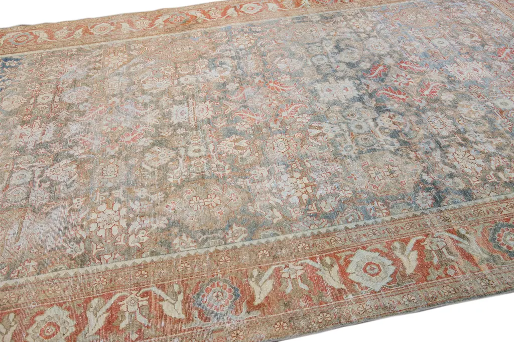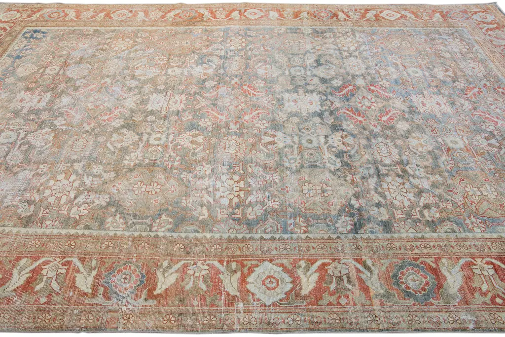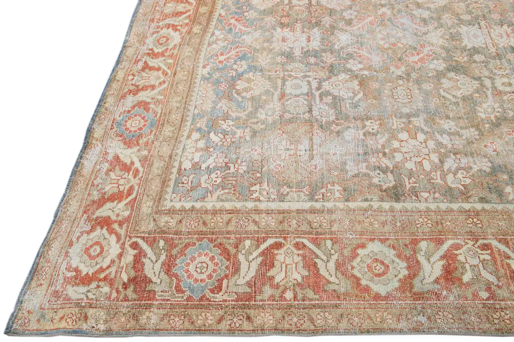 Beautiful hand-knotted antique Mahal wool rug with the Gray field. This Persian rug has a rusted frame, ivory and brown accents featuring a traditional floral pattern design. This rug measures: 8' x 12'. Our Rugs undergo professional cleaning before shipping.