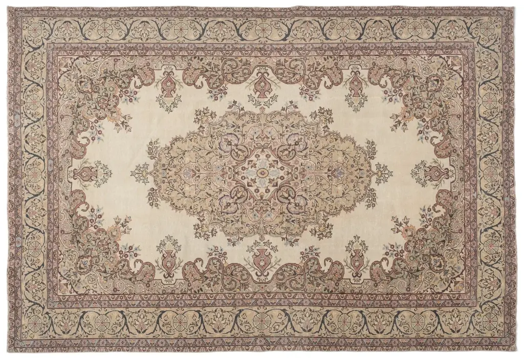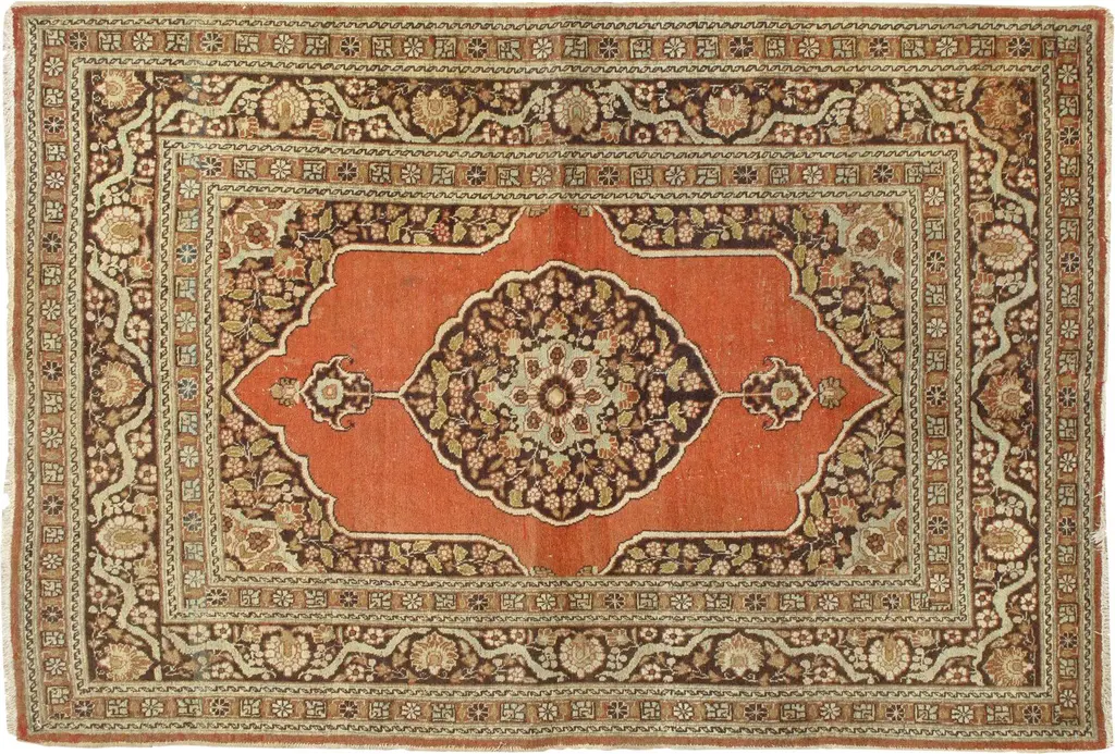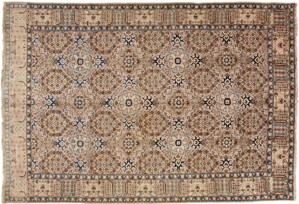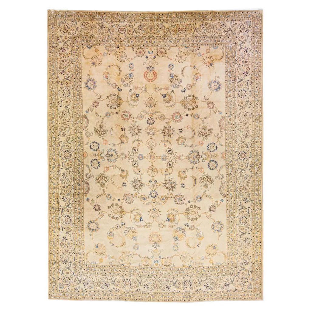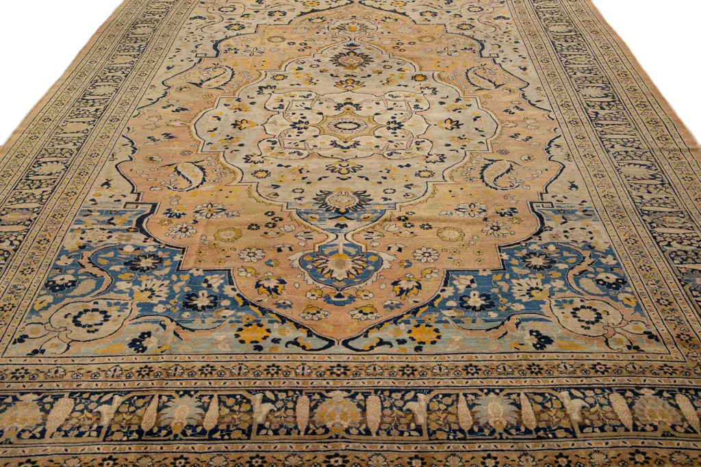 Beautiful antique Persian Tabriz hand-knotted wool rug with a light blue and peach field. This piece has a navy-blue frame and multicolor accents in an all-over gorgeous floral design. This rug measures: 9'6" x 13'2". Our Rugs are professionally cleaned before shipping.
