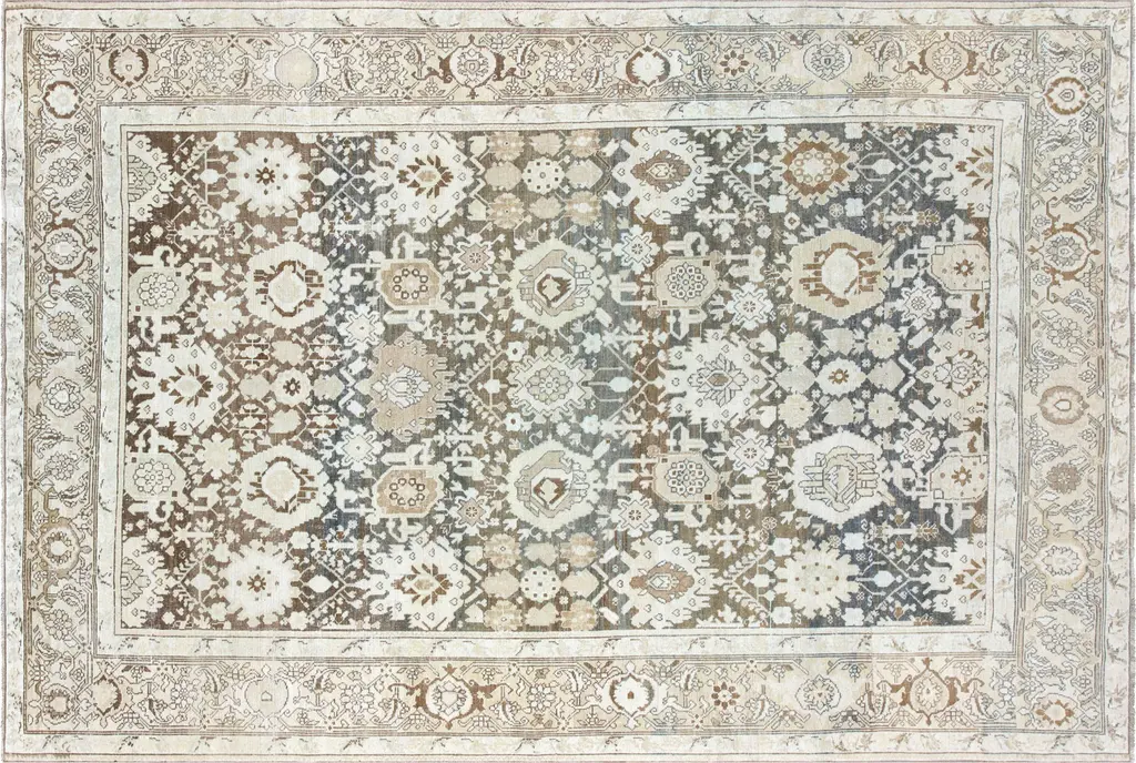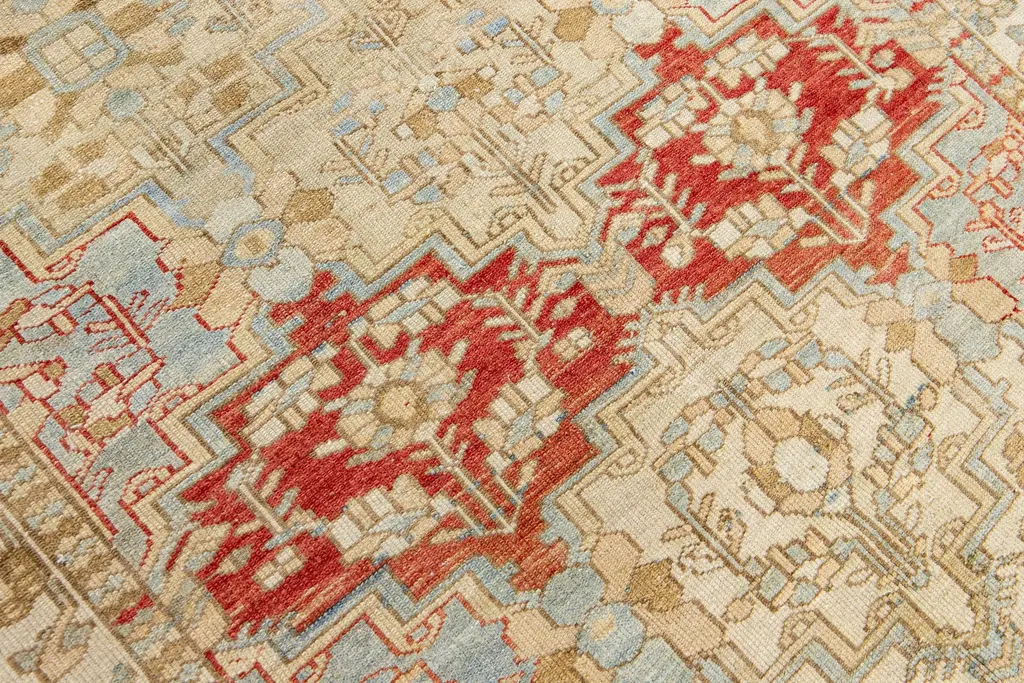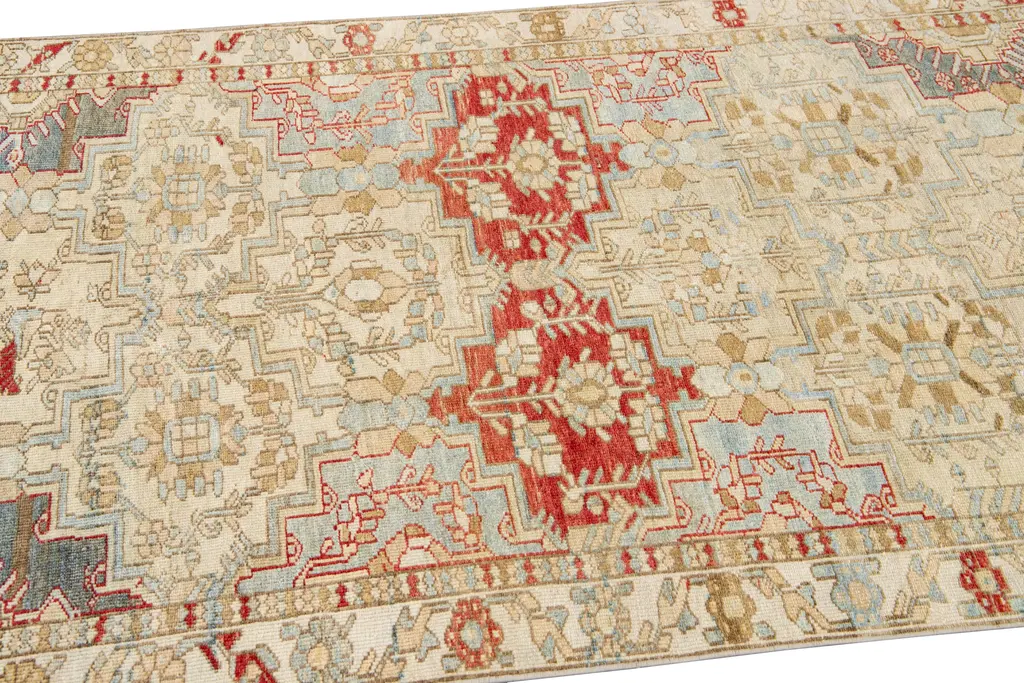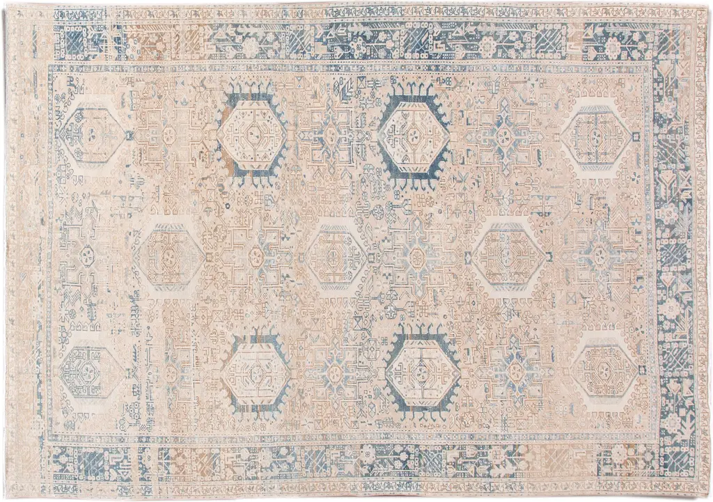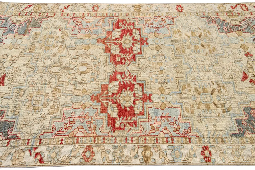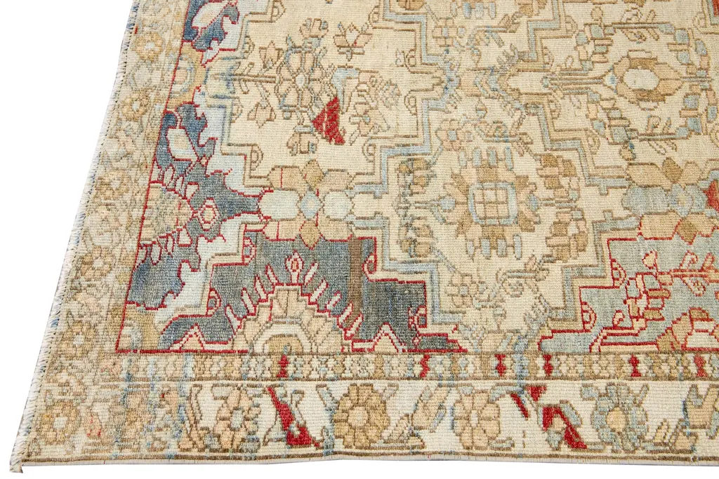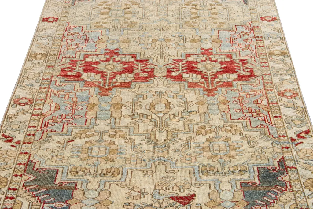 Beautiful antique Tabriz hand-knotted wool rug with a beige field. This piece has a blue and red accent in a gorgeous all-over geometric floral design. This rug measures: 3'10" x 6'6". Our rugs undergo professional cleaning before shipping.