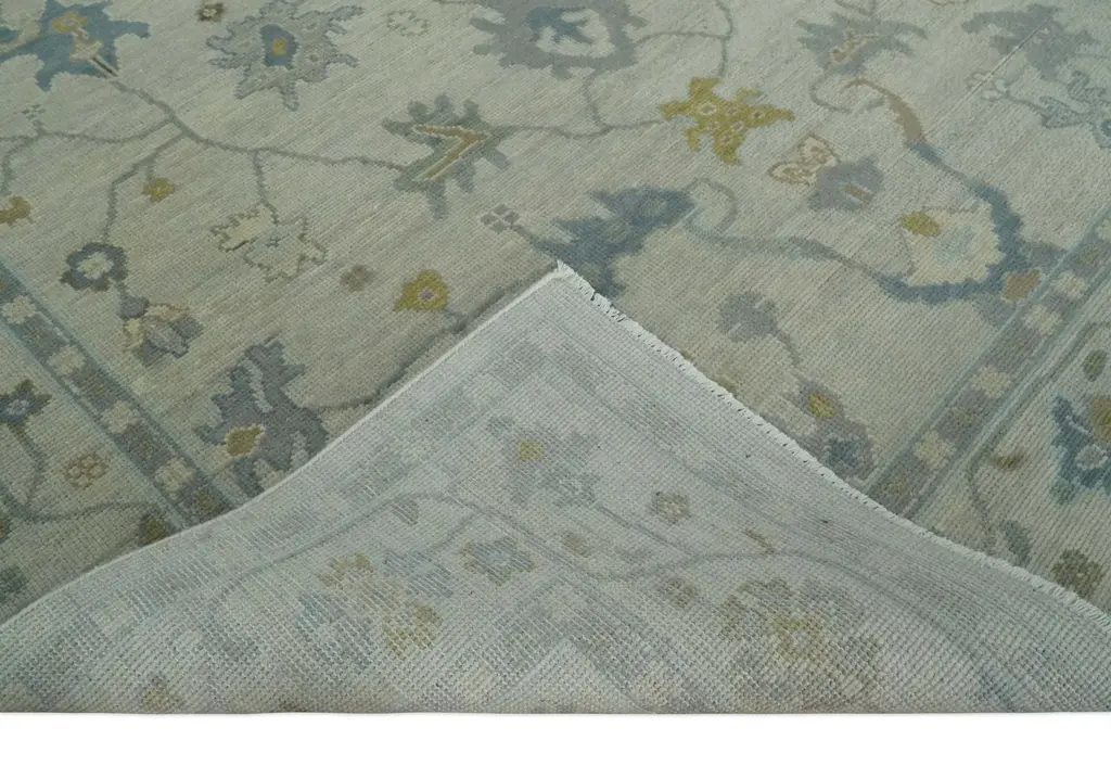 Antique Silver Hand Knotted Traditional Multi Size Oushak Wool Area Rug - 2.6x15