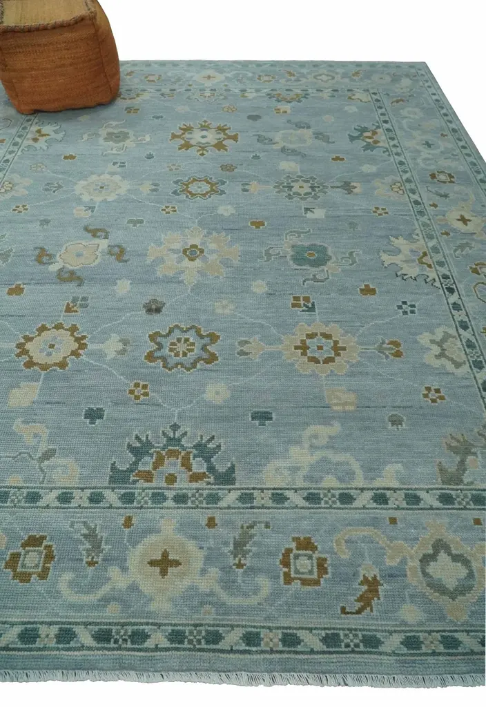This Antique Silver Multi Size Hand Knotted Turkish Style Oushak Traditional Area Rug is the perfect addition to any living room. Ideal for traditional settings, this rug is hand knotted with silver thread for a unique and intricate design. Bring a classic look to your home with this beautiful piece. Hand-Knotted SIZES ARE MADE TO ORDER IN 30-45 DAYS Made with Wool Color : Silver Made with 28 knots per square inch This specific rug is made in India, in the city of Bhadohi. Bhadohi is one of the biggest rug manufacturing cities. Carpet weaving in the region dates back to the 16th century during the reign of Akbar. The skilled artisans of Bhadohi have been carrying the tradition of rug-making for centuries. USERS GUIDE Avoid prolonged moisture Vacuum regularly and/or shake to remove dust Do not pull any loose threads. Use scissors to simply cut the ends The blot spills immediately with a white cloth. Harsh chemicals may damage or fade the rug Use rug protectors under heavy furniture