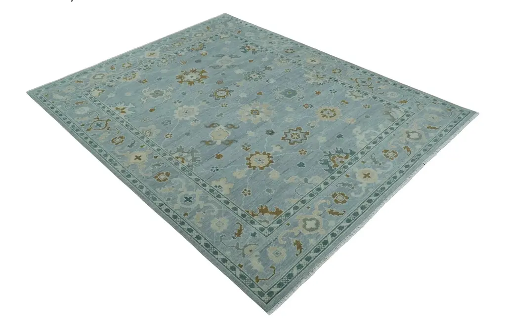 This Antique Silver Multi Size Hand Knotted Turkish Style Oushak Traditional Area Rug is the perfect addition to any living room. Ideal for traditional settings, this rug is hand knotted with silver thread for a unique and intricate design. Bring a classic look to your home with this beautiful piece. Hand-Knotted SIZES ARE MADE TO ORDER IN 30-45 DAYS Made with Wool Color : Silver Made with 28 knots per square inch This specific rug is made in India, in the city of Bhadohi. Bhadohi is one of the biggest rug manufacturing cities. Carpet weaving in the region dates back to the 16th century during the reign of Akbar. The skilled artisans of Bhadohi have been carrying the tradition of rug-making for centuries. USERS GUIDE Avoid prolonged moisture Vacuum regularly and/or shake to remove dust Do not pull any loose threads. Use scissors to simply cut the ends The blot spills immediately with a white cloth. Harsh chemicals may damage or fade the rug Use rug protectors under heavy furniture