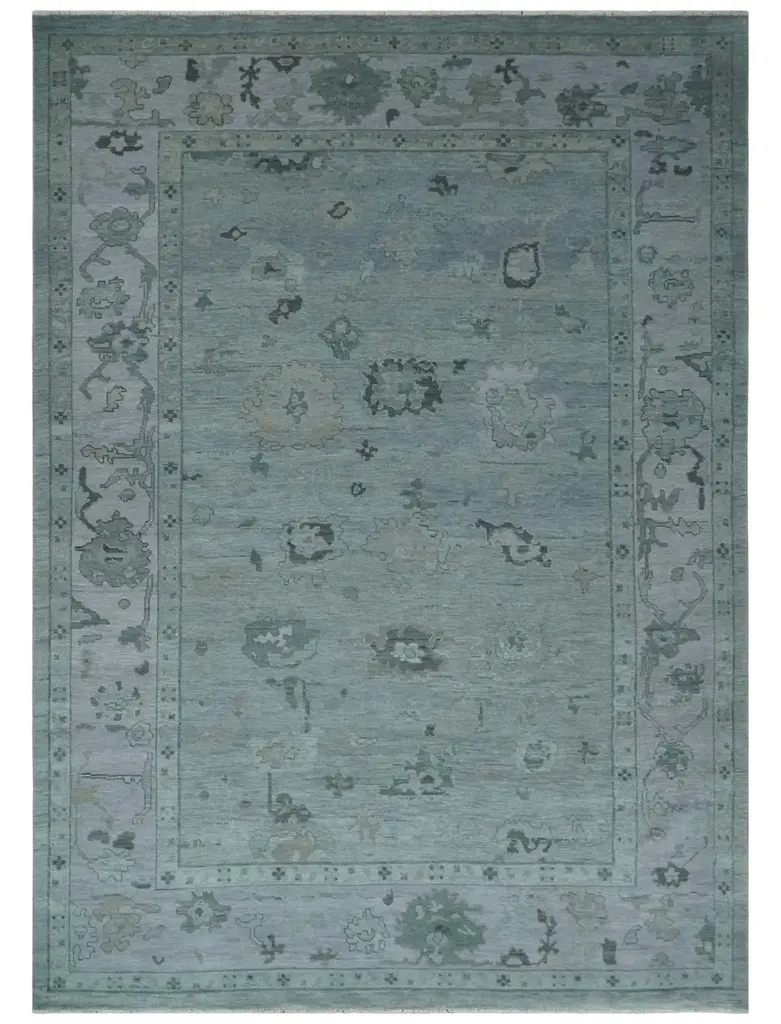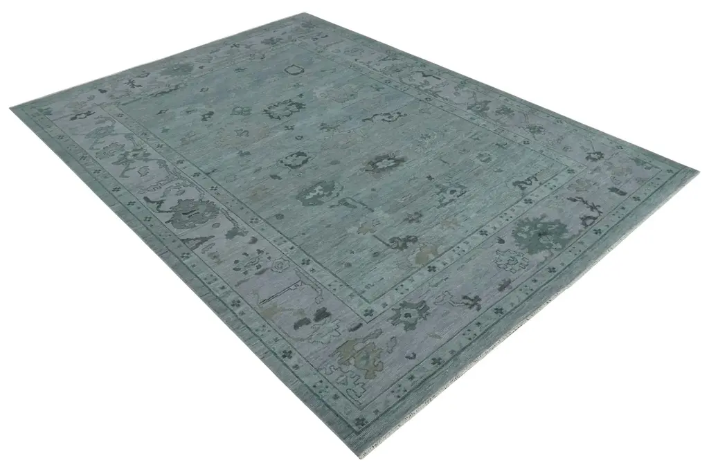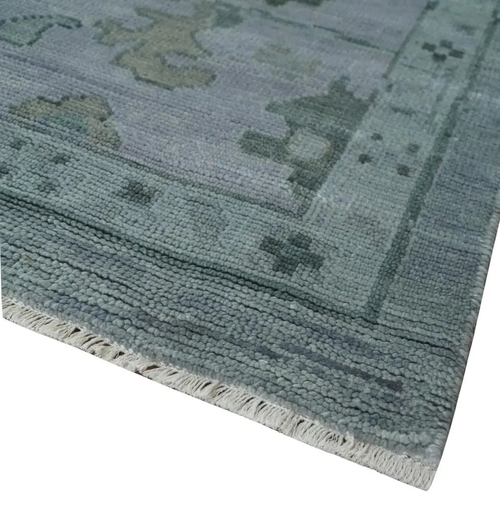 This hand knotted Oushak wool rug has a stunning antique look with an eye-catching gray and silver colors. The design combines old world, time-honored styles with rich, natural colors for a unique blend of traditional and contemporary. With a variety of sizes available, it's sure to add a timeless look to any room. Hand-Knotted SIZES ARE MADE TO ORDER IN 30-60 DAYS Made with Wool Color : Gray and Silver Made with 28 knots per square inch This specific rug is made in India, in the city of Bhadohi. Bhadohi is one of the biggest rug manufacturing cities. Carpet weaving in the region dates back to the 16th century during the reign of Akbar. The skilled artisans of Bhadohi have been carrying the tradition of rug-making for centuries. USERS GUIDE Avoid prolonged moisture Vacuum regularly and/or shake to remove dust Do not pull any loose threads. Use scissors to simply cut the ends The blot spills immediately with a white cloth. Harsh chemicals may damage or fade the rug Use rug protectors under heavy furniture