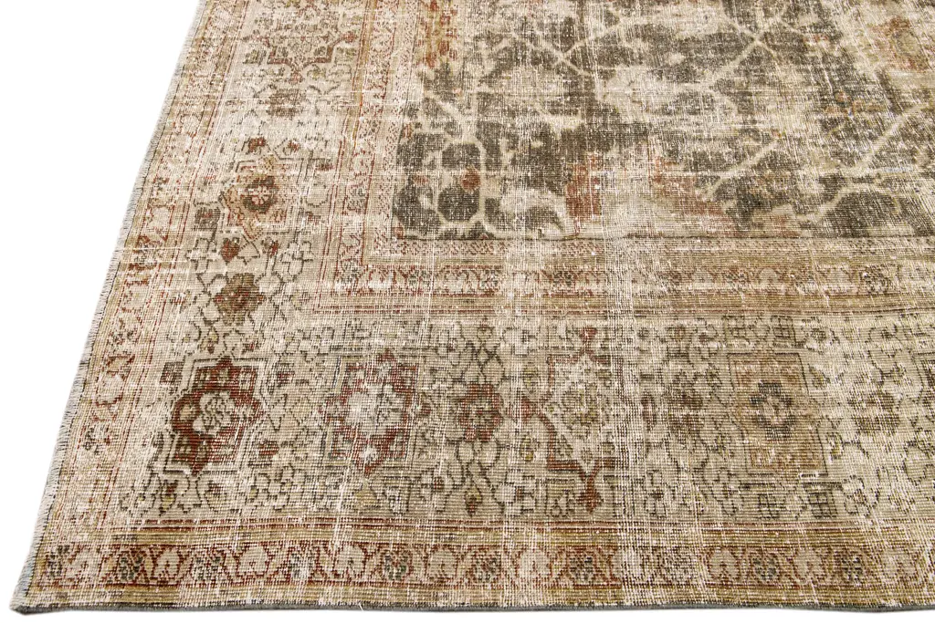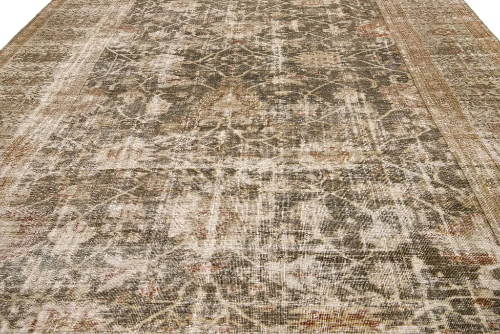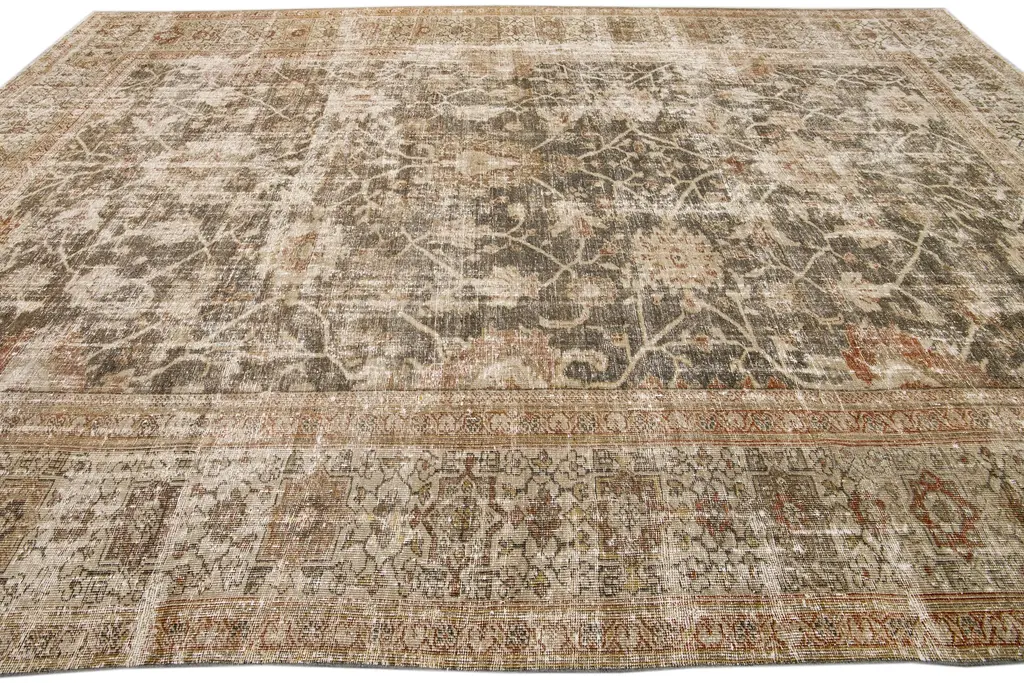 Beautiful Sultanabad hand-knotted wool rug with a blue field. This antique piece has a brown accent in a gorgeous all-over floral pattern design. This rug measures: 10'8" x 14'2". Our Rugs are professionally cleaned before shipping.