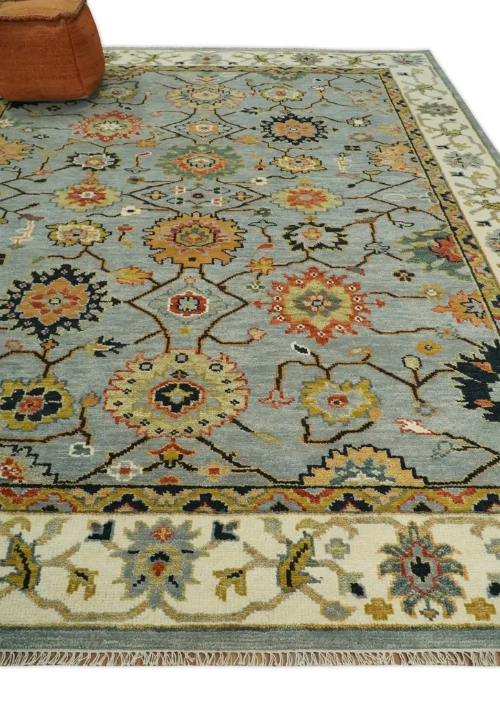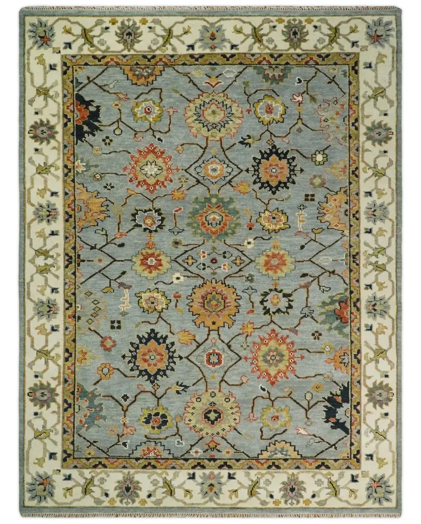This Hand-Knotted Rug has been Made with Handspun Wool. The beautiful colors and design of the rug carry a legacy of heirloom rugs. The large design of the rug completes your space without making it look busy. The rug is durable and can last for decades if treated right. Hand-Knotted Made with Soft Wool Size are Made to order in 30-60 Days Color: Gray and Ivory Made with 20 knots per square inches This specific rug is made in India, in the city of Bhadohi. Bhadohi is one of the biggest rug manufacturing cities. Carpet weaving in the region dates back to the 16th century during the reign of Akbar. The skilled artisans of Bhadohi have been carrying the tradition of rug-making for centuries. USERS GUIDE Avoid prolonged moisture Vacuum regularly and/or shake to remove dust Do not pull any loose threads. Use scissors to simply cut the ends Blot spills immediately with a white cloth. Harsh chemicals may damage or fade the rug Use rug protectors under heavy furniture