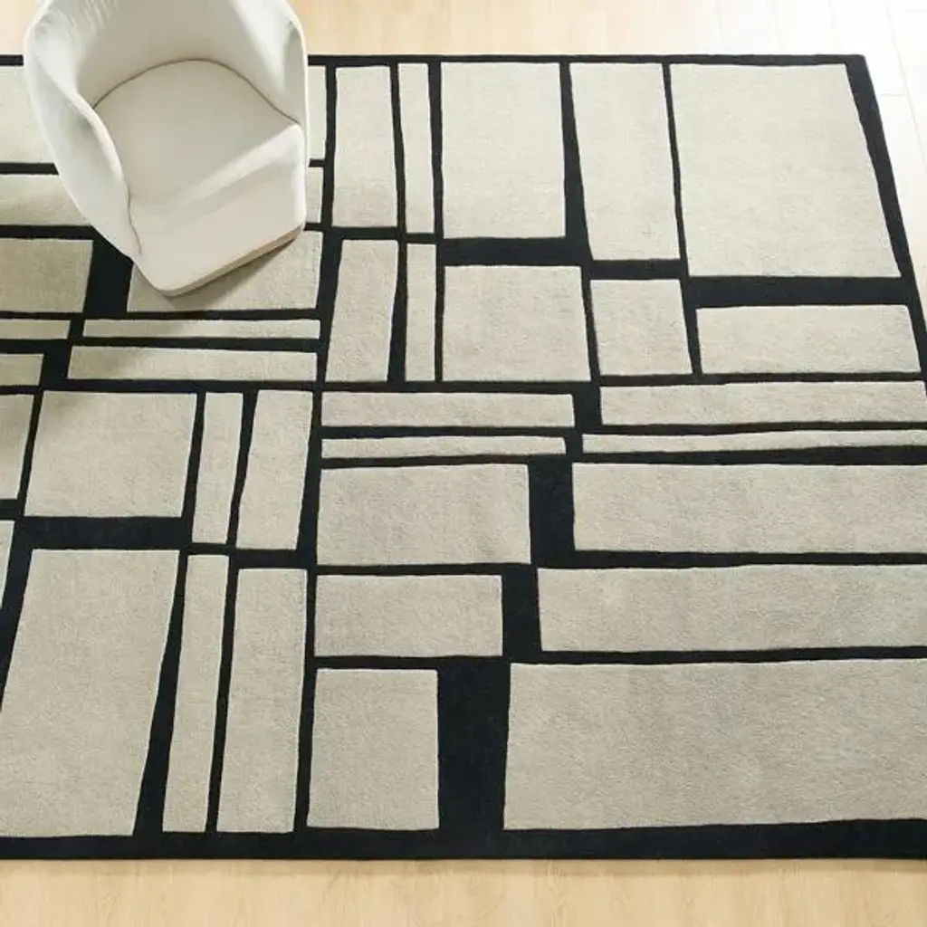 Our Antithesis rug features an eye-catching geometric pattern hand tufted and made of a 76% wool and 24% viscose blend designed to enhance any décor. The stark contrast between the ivory and the black adds an extra touch of elegance and timelessness to even the simplest of rooms. Care instructions: Professional Clean Only. Available in multiple sizes. Please select size before adding to cart.