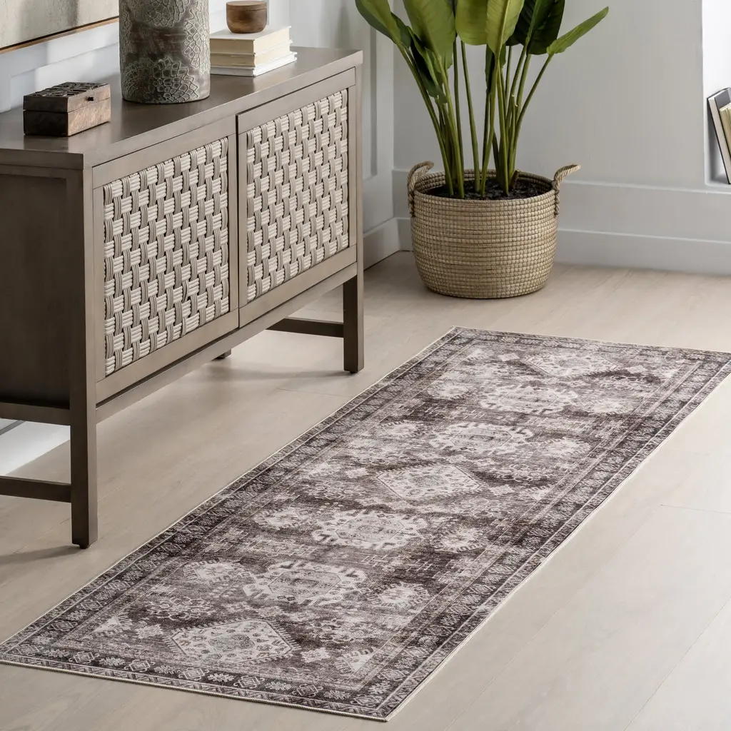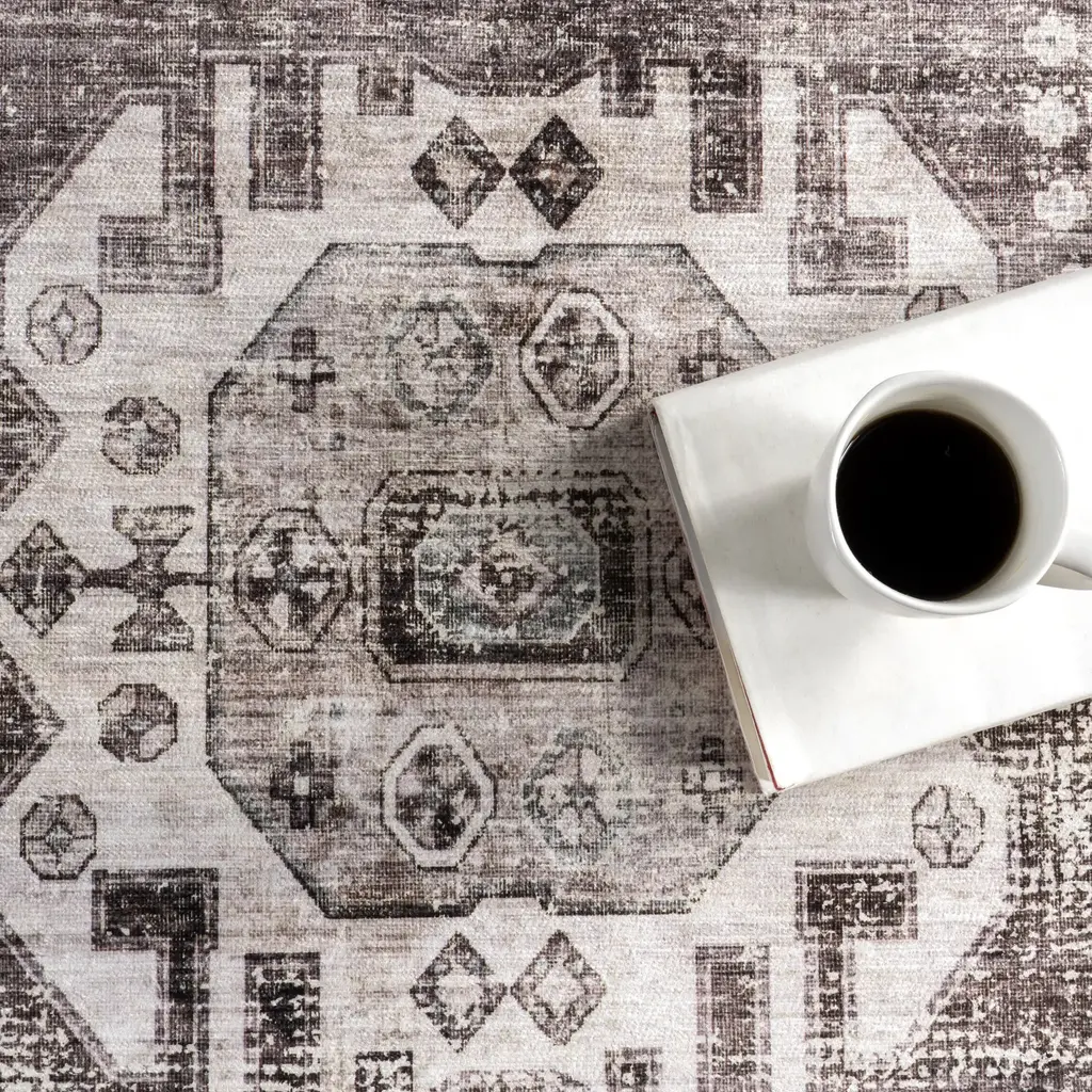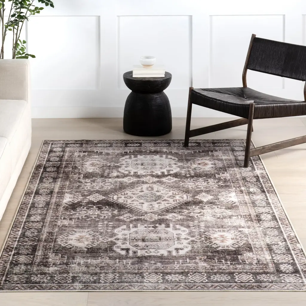 Antoinette Spill Proof Washable Rug | Charcoal - 2' 6" X 8'