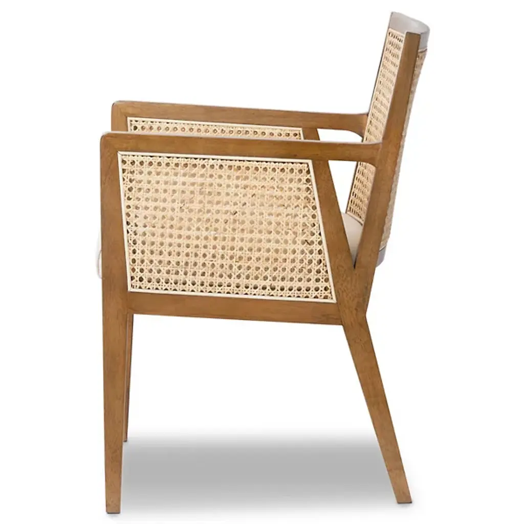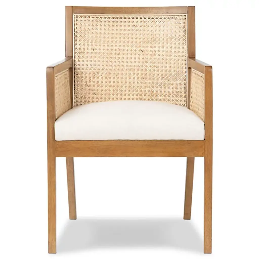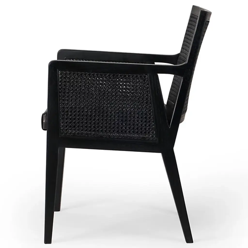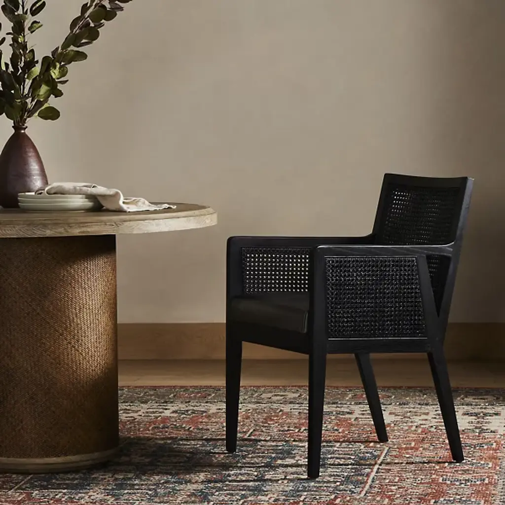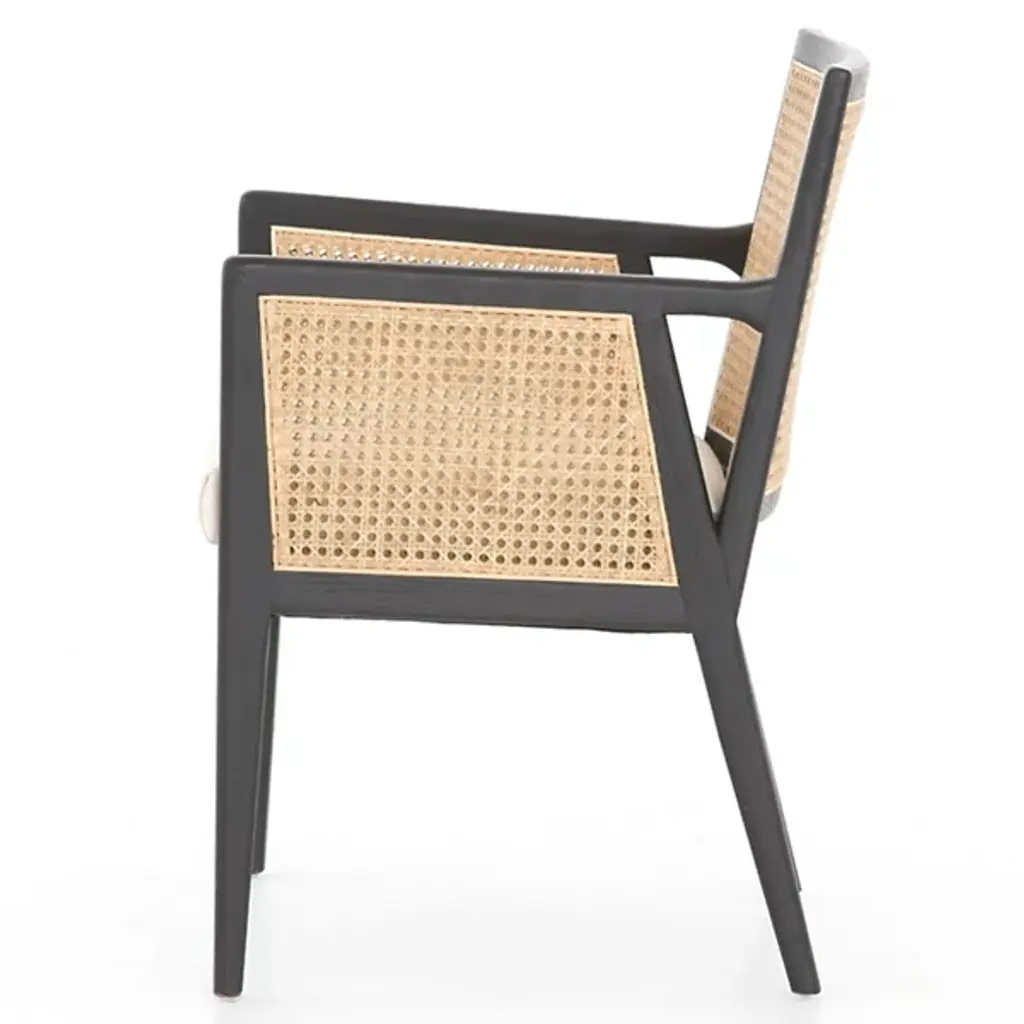 The Antonia Dining Arm Chair by Four Hands gives your decorative arrangement a touch of class. This chair is defined by block corners. A cushioned seat is neatly enveloped by an intricate cane. The hallmark dotted, woven pattern brings texture to your chair’s contemporary design. The space between the Antonia Dining Armchair’s seatback and its sturdy arms creates a lovely, triangular silhouette, giving your furnishment a distinctive appearance. The Antonia Dining Arm Chair can be placed over the top of rugs and hardwood floors alike.