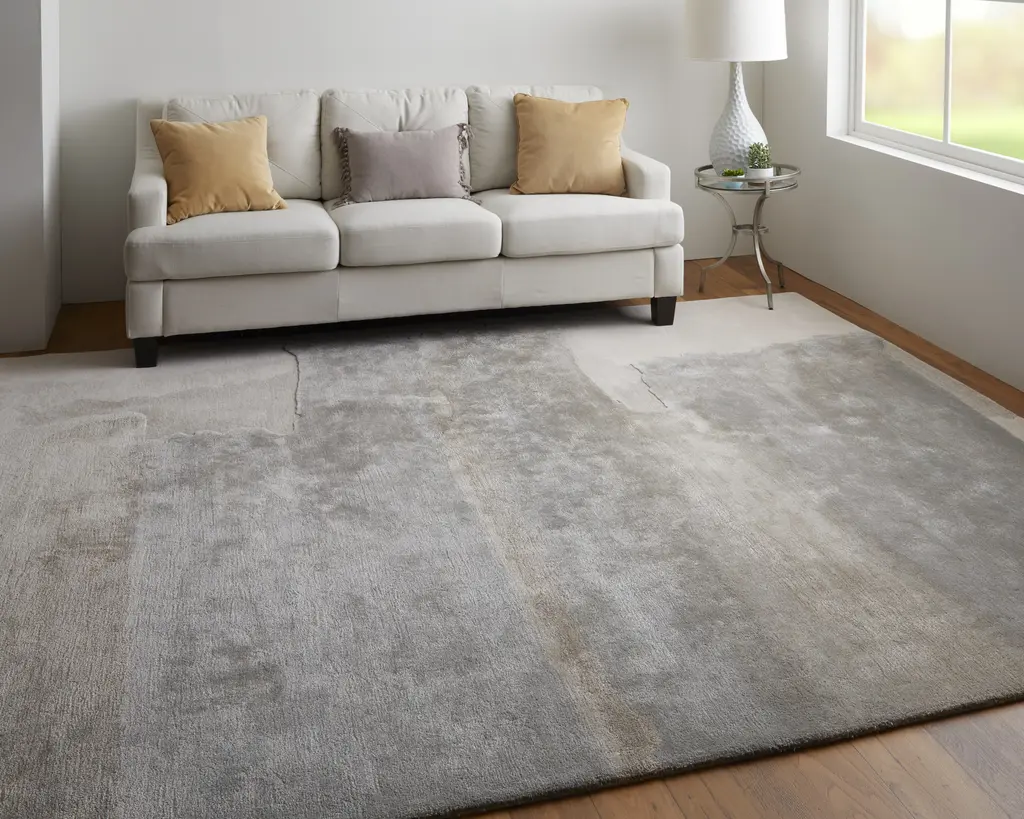 Collection: Anya Colors: Ivory, Gray Construction: Hand Tufted Material: Face: Wool, Viscose / Warp: Cotton Pile: Low Pile Pile Height: 0.51" Styles: Transitional,Industrial,Casual Backing: Cotton Made In: India Thickness: 0.51" Price Range: $$$$$ (Premium)