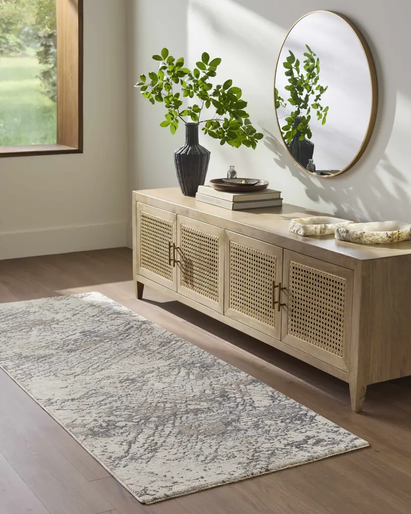 Collection: Aolani Colors: Cream, Charcoal, Ivory, Tan, Gray, Medium Gray Construction: Machine Woven Material: 100% Polyester Pile: Medium Pile Pile Height: 0.35" Styles: Southwestern Made In: Turkey Thickness: 0.43" Price Range: $$$$$ (Affordable)