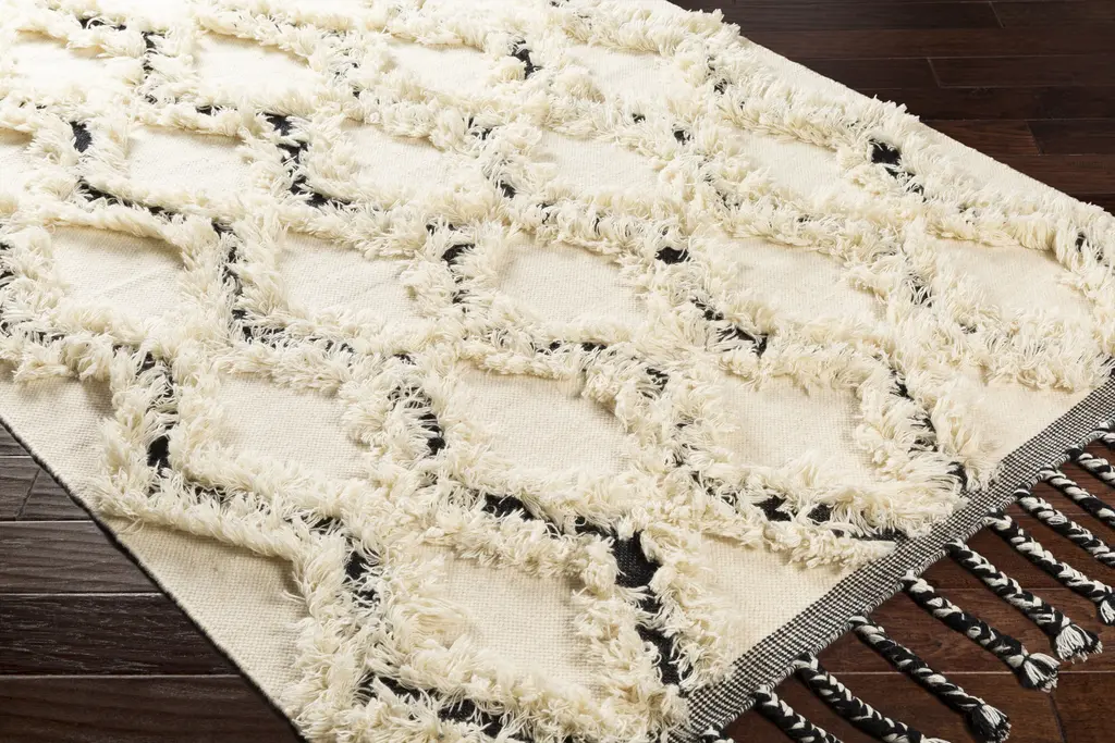 Experience a touch of Moroccan global style with the Apache Collection hand woven rug. Manufactured in India, this plush pile rug is made entirely of wool, offering a warm and cozy feel underfoot. The added fringe detail gives it an extra hint of charm and character. We recommend pairing it with a rug pad for optimal comfort and longevity. And when it comes to cleaning, simply spot clean with mild detergent to keep it looking fresh and vibrant. Enjoy this stunning addition to your home decor!