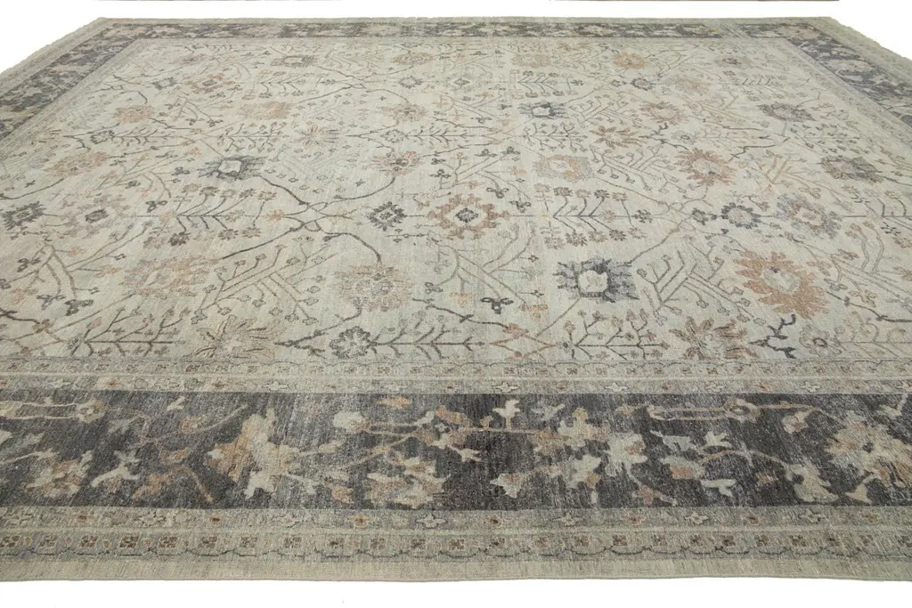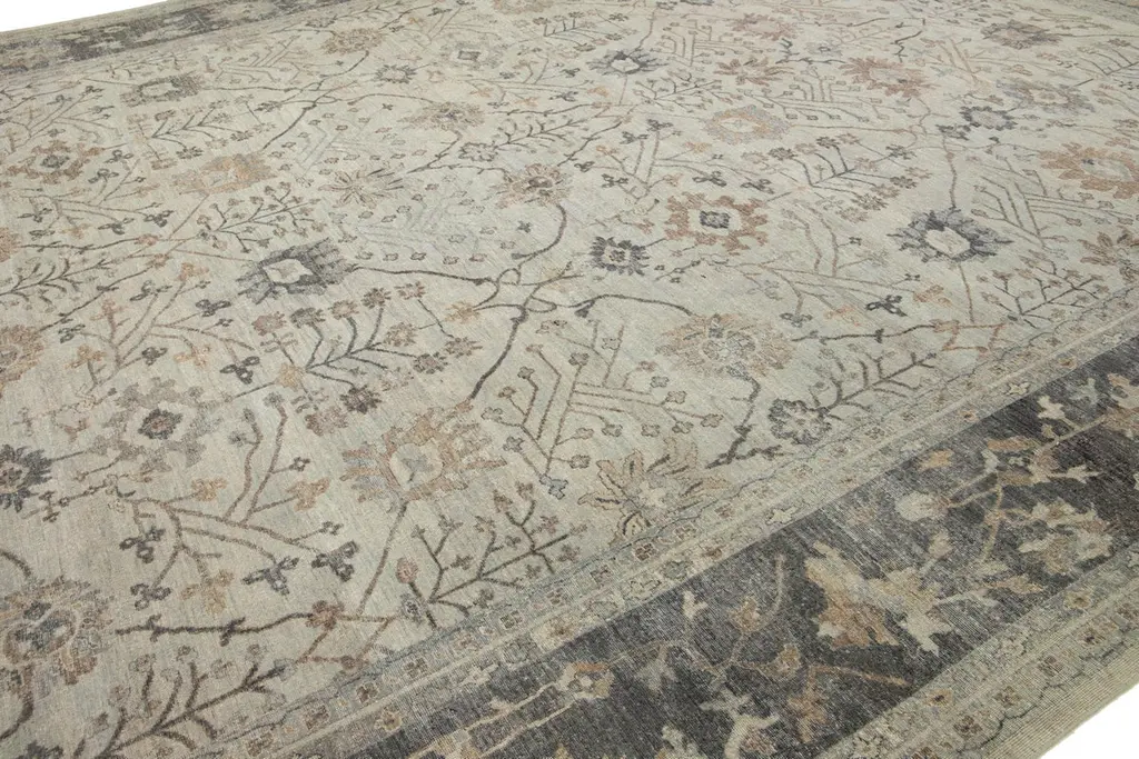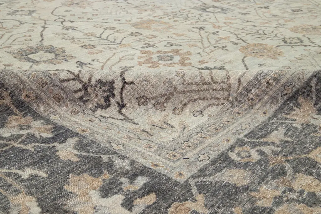 Apadana's Artisan Line offers a reimagined take on antique rugs, providing an elegant way to infuse any space with a striking antique aesthetic. Each rug in this collection is uniquely crafted, transforming the traditional appearance of antique rugs. Every piece from our Artisan line is meticulously handwoven. This custom Mahal-style rug showcases a stunning all-over design against a rich beige field.This rug measures 14'11" x 18'11".Our rugs are professionally cleaned before shipping.