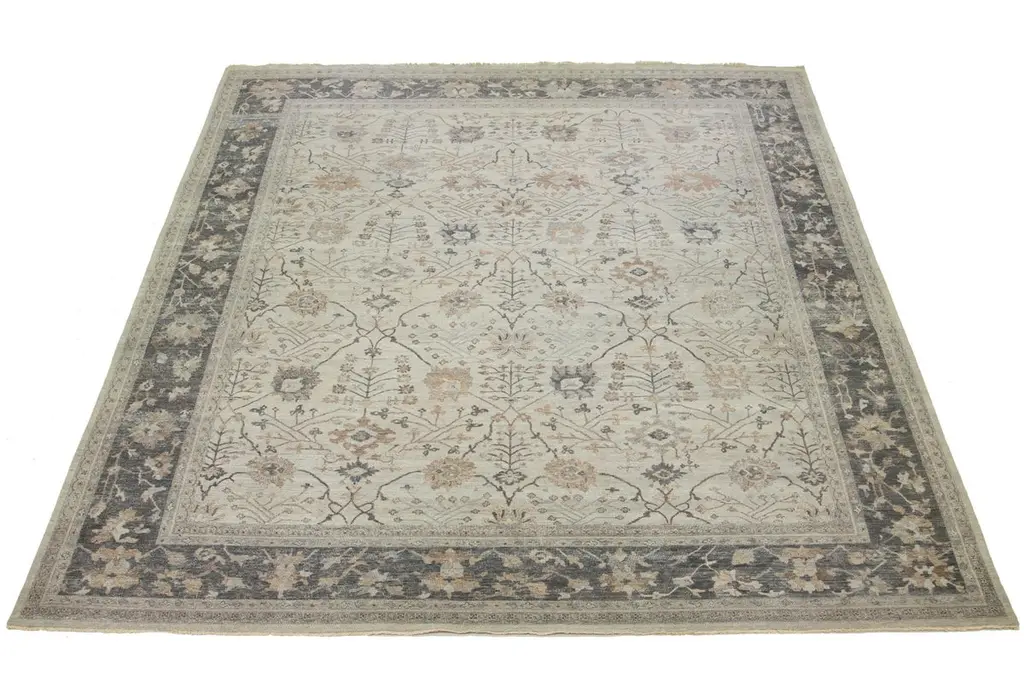 Apadana's Modern Mahal Style Oversized Indian Wool Rug Handmade In Beige