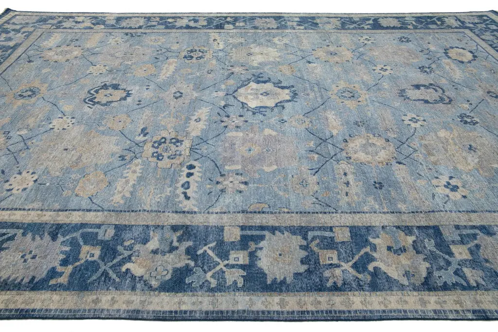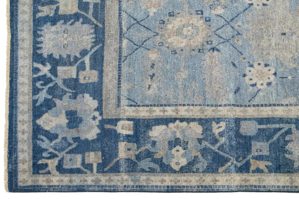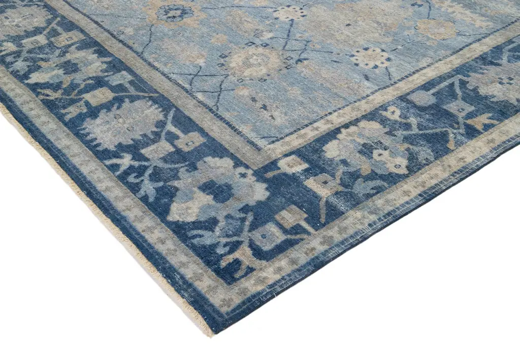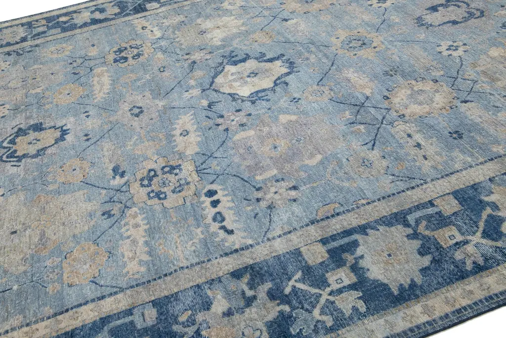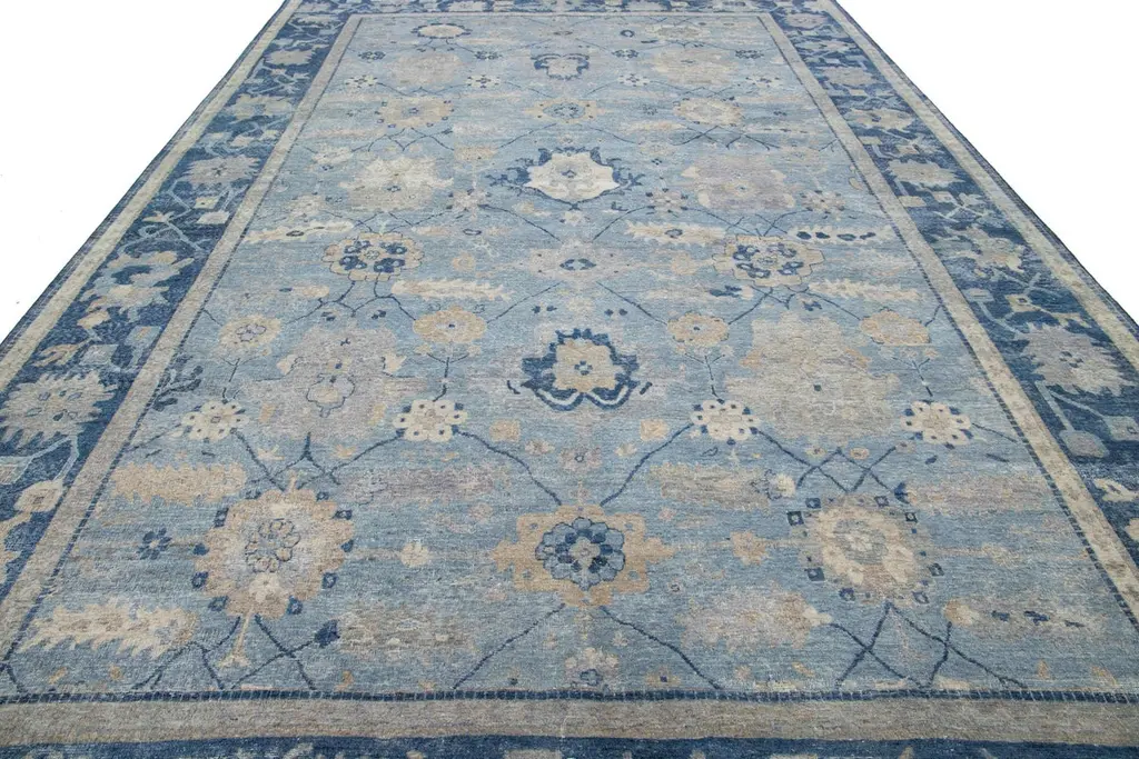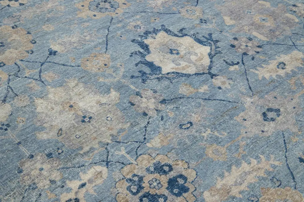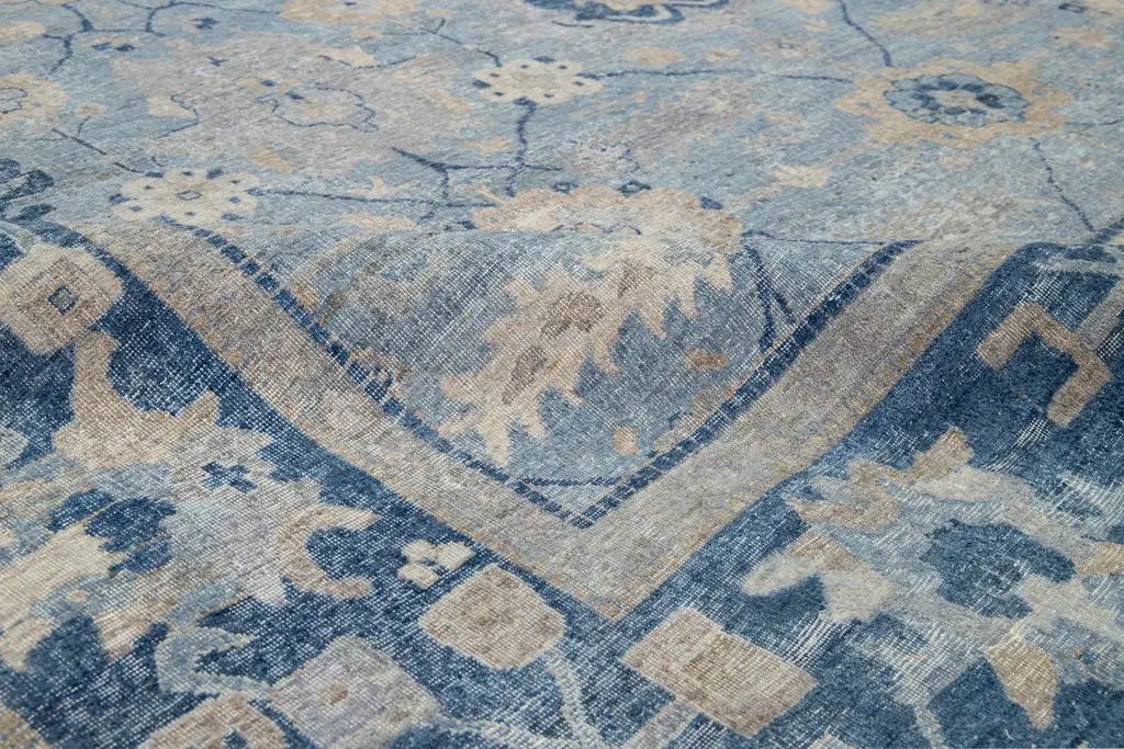 Apadana's Artisan Line offers a reimagined take on antique rugs, providing an elegant way to infuse any space with a striking antique aesthetic. Each rug in this collection is uniquely crafted, transforming the traditional appearance of antique rugs. Every piece from our Artisan line is meticulously handwoven. This custom Tabriz-style rug showcases a stunning all-over design against a rich blue field.This rug measures 10'2" x 15'8".Our rugs are professionally cleaned before shipping.