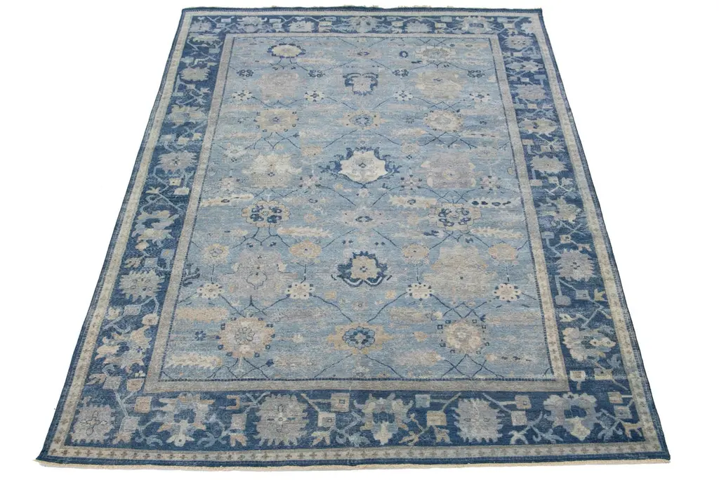 Apadana's Modern Tabriz Style Handmade Indian Wool Rug In Blue