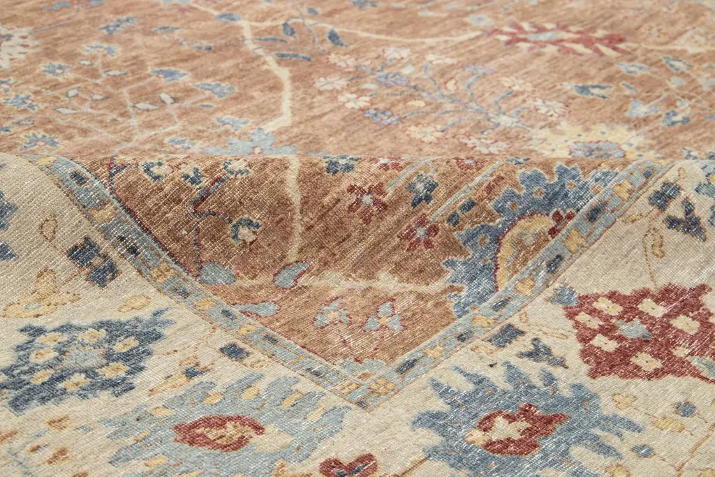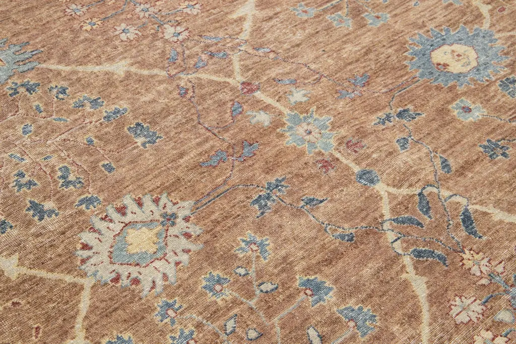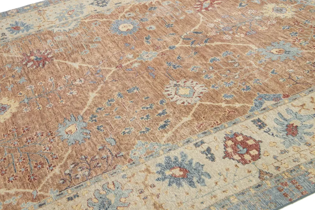 Apadana's Artisan Line offers a reimagined take on antique rugs, providing an elegant way to infuse a striking antique aesthetic into any space. Each rug in this collection is uniquely crafted, transforming the traditional appearance of antique rugs. Every piece from our Artisan line is meticulously handwoven. This custom Tabriz-style rug showcases a stunning all-over design against a rich brown field.This rug measures 7'10" x 10'Our rugs are professionally cleaned before shipping.