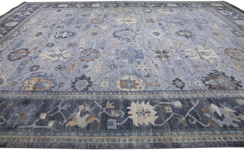 Apadana's Artisan line is an Antique rug reimagined with an elegant way to inject a striking antique aesthetic into a space. This line of rugs is decidedly unique and reimagines what an antique rug look can be. Every single piece from our Artisan line is painstakingly woven by hand. This custom rug features a gorgeous all-over floral design with a gray field.This rug measures: 14'11" x 19'6".Our rugs are professional cleaning before shipping.