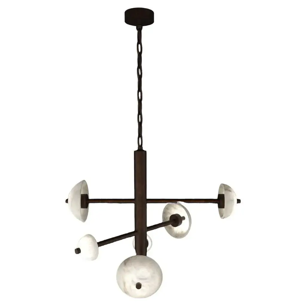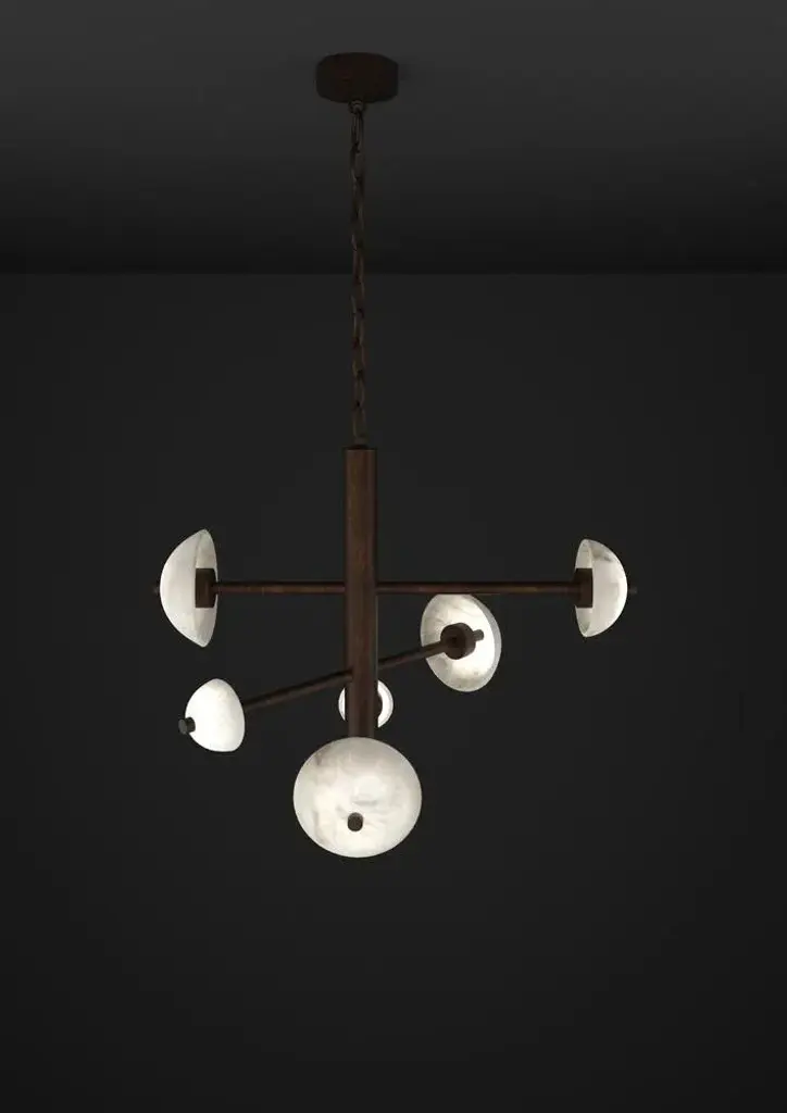 Apollo ruggine of florence metal pendant lamp by alabastro italiano dimensions: d 70,5 x w 54 x h 64 cm. Materials: white alabaster and metal. Available in different finishes: shiny silver, bronze, brushed brass, ruggine of florence, brushed burnished, shiny gold, brushed black, freedom green, shiny black and copper. Please contact us. All our lamps can be wired according to each country. If sold to the usa it will be wired for the usa for instance. Alabaster domes of various diameters and tubular elements of different widths give dynamism to this exclusive piece while maintaining a perfect balance of style. Named apollo in honour of the greek god who pulled the chariot of the sun, the serie is inspired by this peculiarity; a metal structure pulls a series of luminescent half spheres. After years of experience in the family business, which specializes in design and lighting, riccardo and alberto ongarato found the brand alabastro italiano. Each project is conceived and designed to give a strong sign of recognizability and uniqueness. The use of precious materials such as alabaster, brass, leather and blown glass, worked by the skilful hands of our craftsmen, are combined to create “timeless” objects. From the depths of the earth to the light of the sun. Alabastro italiano care about these extremes and transcends them in a creative dynamic that emphasizes simplicity and clean-cut lines. The company has created an entirely new project made in italy, revolutionizing the previously existing collections into eternal and evergreen lighting elements. By designing clean-cut and original lines, built-in with the latest technology and continuously innovating, alabastro italiano has never lost sight of its goal: perfection. The result of this work is an extraordinary collection of alabaster lightings. Alabaster needs human hands to come to life. The charm of these stone objects comes from their uniqueness, from the fact that they come from the hand of those who has left a mark and a memory with their work, each grain makes each piece unique. Alabaster needs human hands to come to life. The charm of these stone objects comes from their uniqueness, from the fact that they come from the hand of those who has left a mark and a memory with their work, each grain makes each piece unique. Alabaster is a material that leaves little traces of magic all around it. It is difficult to identify the exact point where the material ends and its reflection begins. It is impossible to understand how far the light sinks in its soft transparency. It changes according to the positions in which it is placed, depending on the point of view. Alabaster is a compact and rare stone that lays down very precise laws requires a familiarity that only italian craftsmen possess. Alabastro italiano collaborates with each client to create a unique project. Starting from the advice for better architectural lighting, it brings its know-how, materials, design and creative inspiration to interior architects and interior designers. up to 250v (europe/uk standard).