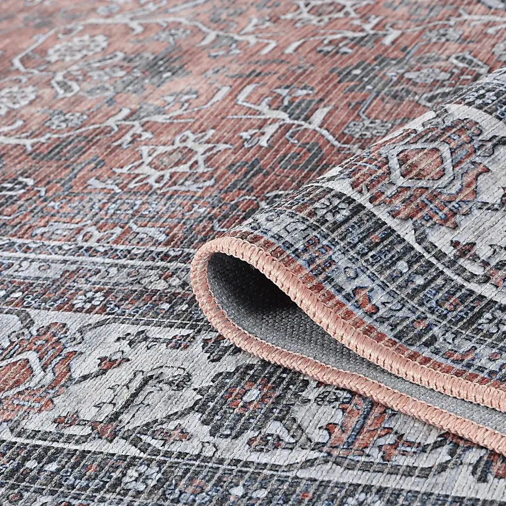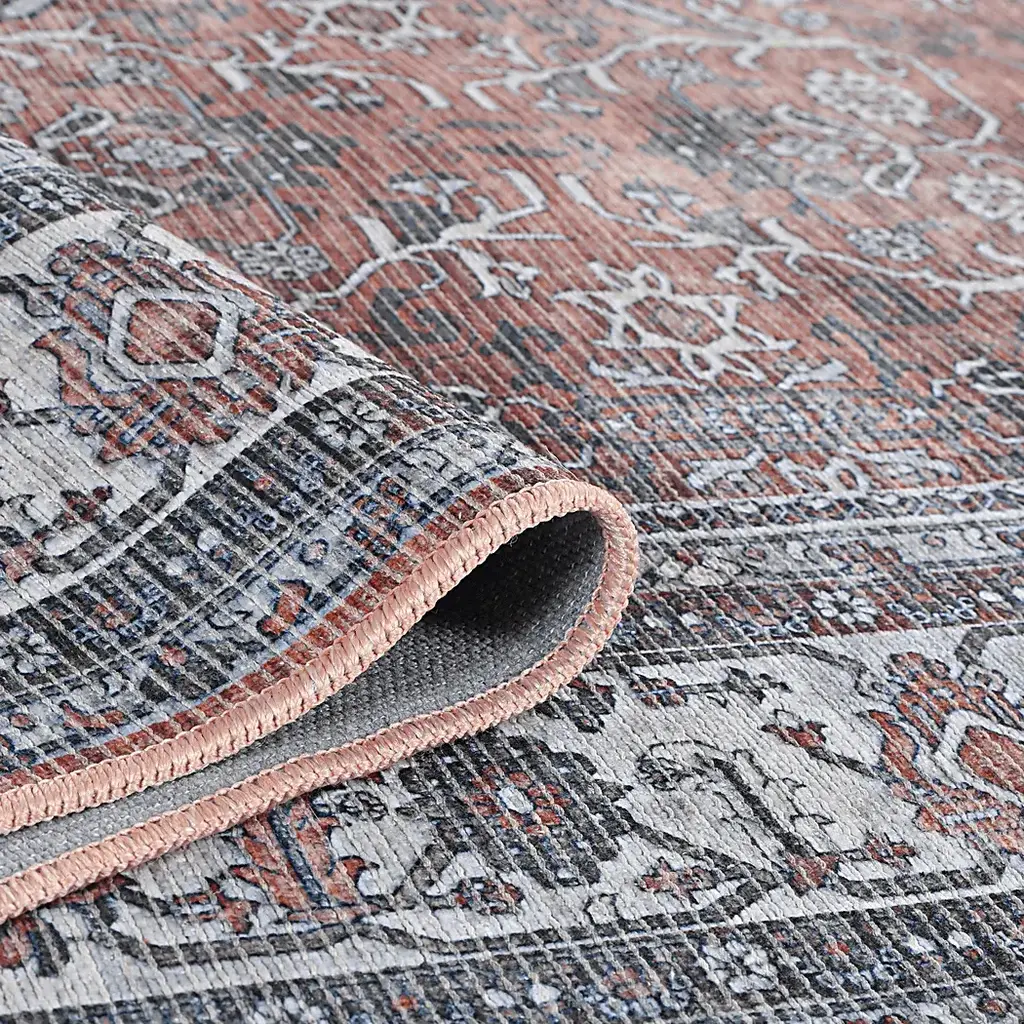 Vintage flair meets modern practicality with our newest Arbelle machine washable area rug. Featuring an artfully faded floral medallion pattern, the classic design is enhanced by its incredible softness and pliability. This vintage-inspired rug is machine-washable for no-fuss cleaning, making it an ideal addition to busy households with pets and kids. Made with polyester and a blend of cotton, this rug is easy to maintain and as durable as it is beautiful.