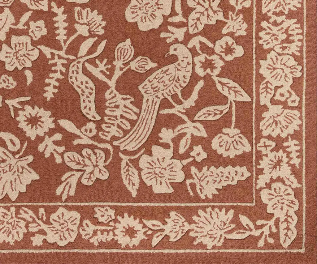Look closely at the elegant garden to see the birds perched among the flowers of our Aviary rug. This two-color rug hooked of 100% wool is soft underfoot, and features carving to add an element of dimension and texture. Part of our Rifle Paper Co. × Loloi collaboration. The layout and scale of our rugs is adjusted to accommodate each available size, and may be different than what is pictured here. Images of each size are available by hovering over the desired size on our desktop site.