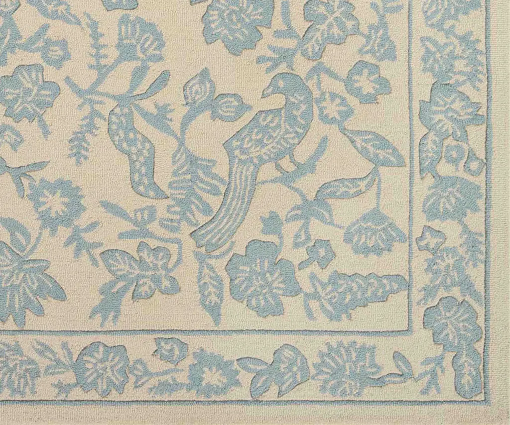 Arboretum Aviary Wool-hooked Rug - Periwinkle