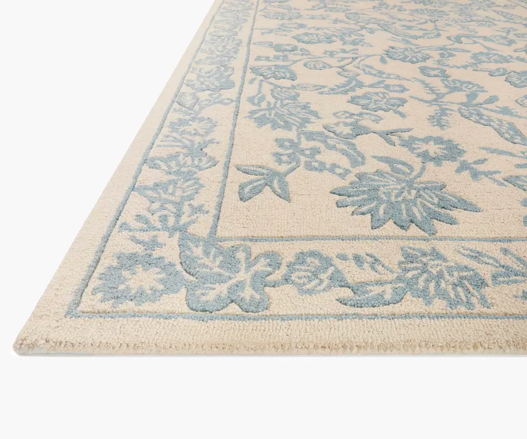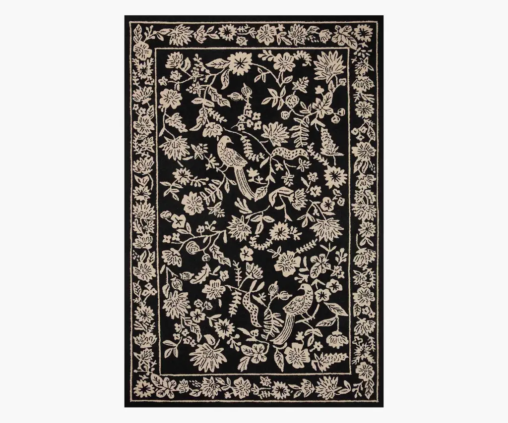 Look closely at the elegant garden to see the birds perched among the flowers of our Aviary rug. This two-color rug hooked of 100% wool is soft underfoot, and features carving to add an element of dimension and texture. Part of our Rifle Paper Co. × Loloi collaboration. The layout and scale of our rugs is adjusted to accommodate each available size, and may be different than what is pictured here. Images of each size are available by hovering over the desired size on our desktop site.