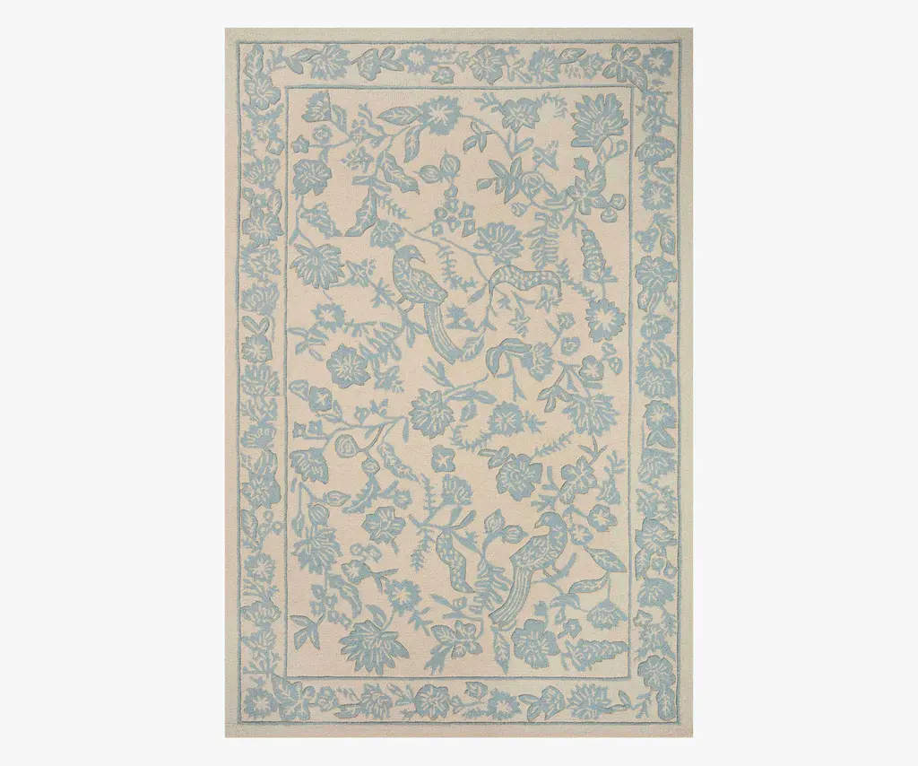 Look closely at the elegant garden to see the birds perched among the flowers of our Aviary rug. This two-color rug hooked of 100% wool is soft underfoot, and features carving to add an element of dimension and texture. Part of our Rifle Paper Co. × Loloi collaboration. The layout and scale of our rugs is adjusted to accommodate each available size, and may be different than what is pictured here. Images of each size are available by hovering over the desired size on our desktop site.