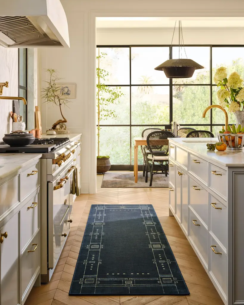 Discover 2025’s interior trends with our Architectural Digest Avery Midnight Blue Rug. This art deco-inspired design features a symmetrical border with intricate Art Deco detailing, beautifully balanced with a minimalist touch. The light cream linework subtly contrasts against a deep navy blue background, giving any space an updated 1920s aesthetic. Water-resistant, stain-resistant, and machine-washable. Rug colors may vary slightly according to your device and the lighting in your space.