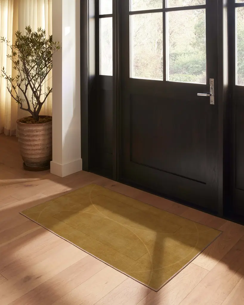 The perfect time for a refresh is now with our Architectural Digest Ayla Gold Rug. Inspired by the works of French jewelry maker Jean Despres, this art deco-inspired design features intersecting arcs and lines that create a balanced field. This symmetrical style has a metallic feel through its gradients and textures. Its monochromatic palette of gold shades features linework that varies in lightness and darkness. Water-resistant, stain-resistant, and machine-washable. Rug colors may vary slightly according to your device and the lighting in your space.