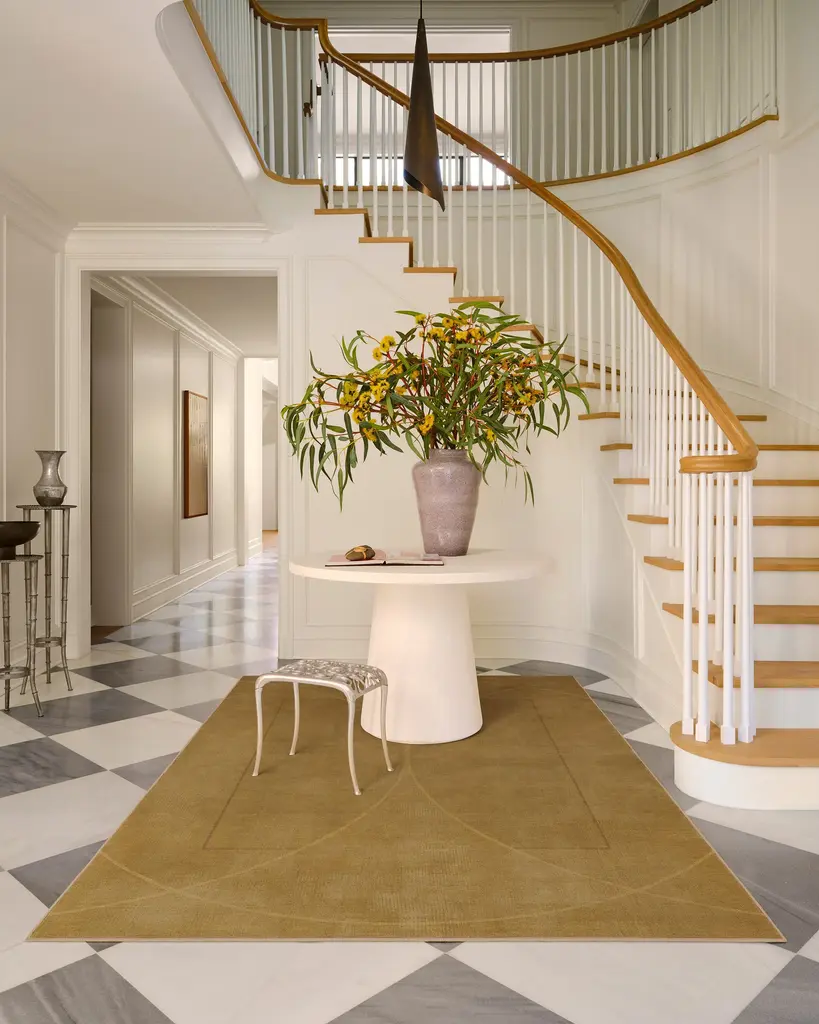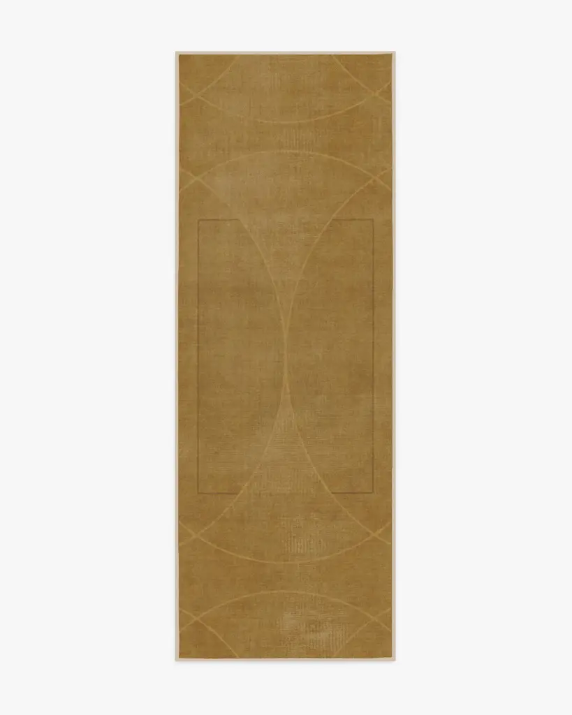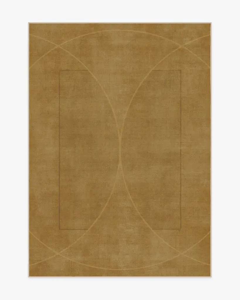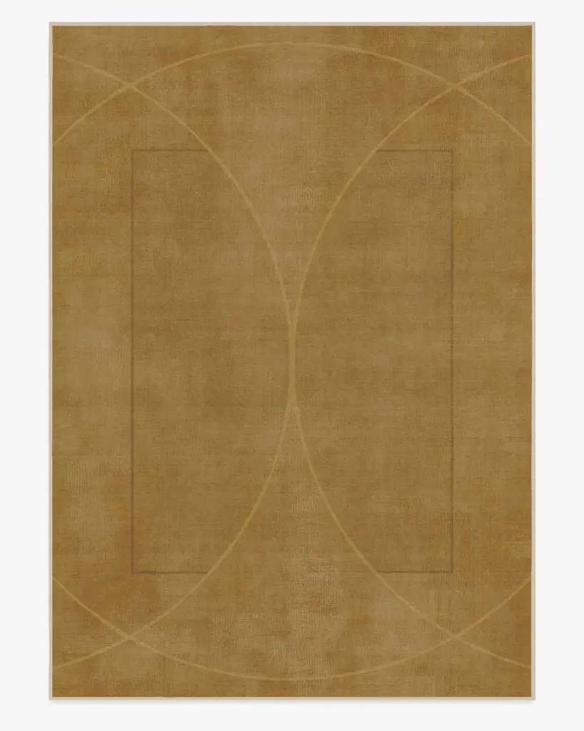The perfect time for a refresh is now with our Architectural Digest Ayla Gold Rug. Inspired by the works of French jewelry maker Jean Despres, this art deco-inspired design features intersecting arcs and lines that create a balanced field. This symmetrical style has a metallic feel through its gradients and textures. Its monochromatic palette of gold shades features linework that varies in lightness and darkness. Water-resistant, stain-resistant, and machine-washable. Rug colors may vary slightly according to your device and the lighting in your space.