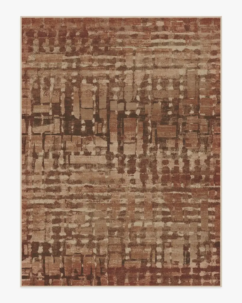 You’re in the designer’s seat with our Architectural Digest Brooklyn Copper Clay Rug. Inspired by the weathered, layered beauty of New York City apartments, this industrial-inspired design features a textural interpretation of eroding brick and stone walls. With imperfect repeats that add rhythm, its distressing appearance hints at stucco and whitewashing, creating a sense of movement. Its rich color palette includes rustic terracotta reds, copper clay, rose gold, dark maroon, dark brown, taupe, and cream. Water-resistant, stain-resistant, and machine-washable. Rug colors may vary slightly according to your device and the lighting in your space.