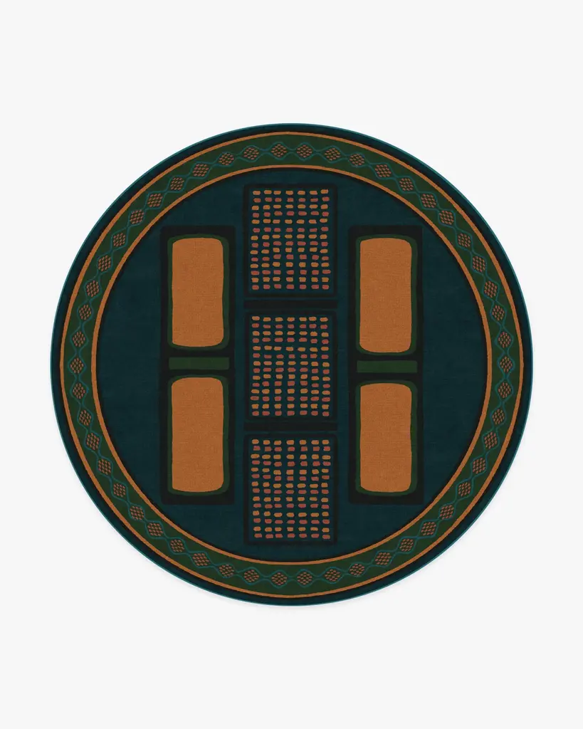 Immerse yourself in the allure of our Architectural Digest Nerissa Teal & Gold Rug, an artistic representation of a moonlit night at the edge of a lush, fragrant forest, designed by David Quarles IV. Inspired by the beauty of nature and the eclectic essence of Quarles' home, this design packs a bold punch with intricate details. Teal and gold hues are complemented by jewel greens and blues, and coral accents that pay homage to Quarles' larger-than-life personality. Water-resistant, stain-resistant, and machine-washable. Rug colors may vary slightly according to your device and the lighting in your space.