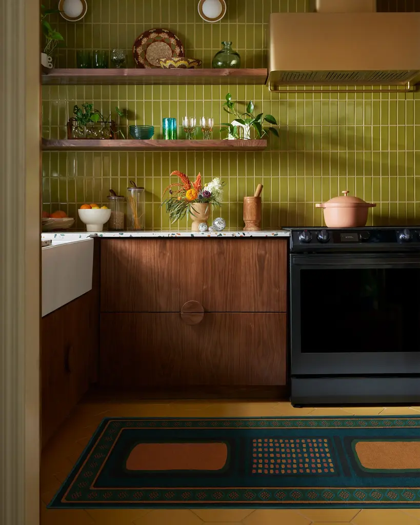 Immerse yourself in the allure of our Architectural Digest Nerissa Teal & Gold Rug, an artistic representation of a moonlit night at the edge of a lush, fragrant forest, designed by David Quarles IV. Inspired by the beauty of nature and the eclectic essence of Quarles' home, this design packs a bold punch with intricate details. Teal and gold hues are complemented by jewel greens and blues, and coral accents that pay homage to Quarles' larger-than-life personality. Water-resistant, stain-resistant, and machine-washable. Rug colors may vary slightly according to your device and the lighting in your space.