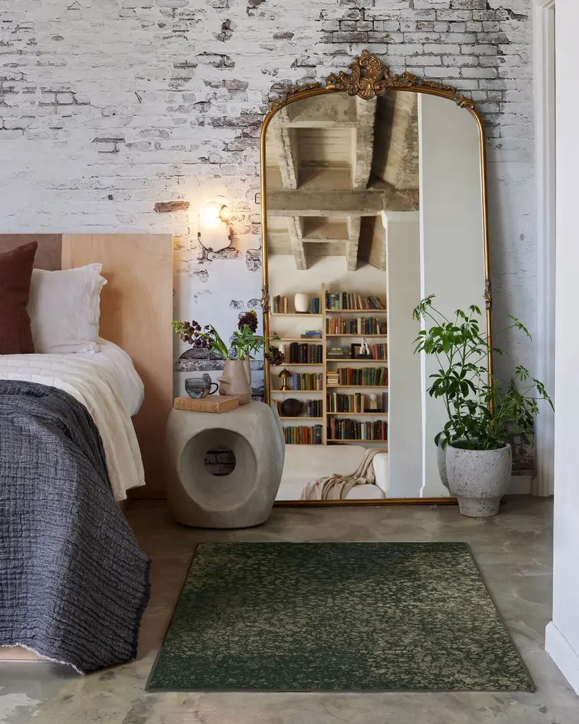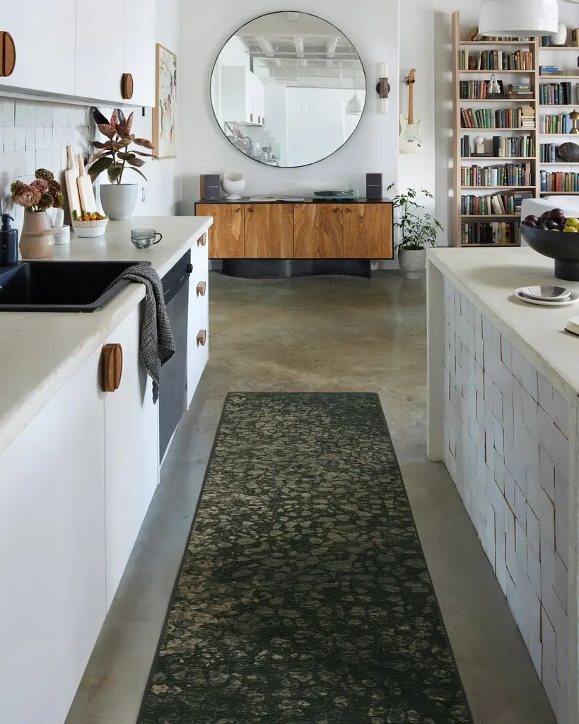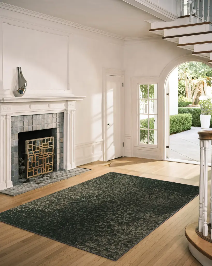 Bring tomorrow’s trends home today with our Architectural Digest Terran Moss Rug. This industrial-inspired design features playful dots that vary in size, color intensity, and spacing, forming subtle patterns that shift beautifully across the surface. Its palette of warm moss green is accentuated by taupe and light beige drops for a balanced contrast. Water-resistant, stain-resistant, and machine-washable. Rug colors may vary slightly according to your device and the lighting in your space.