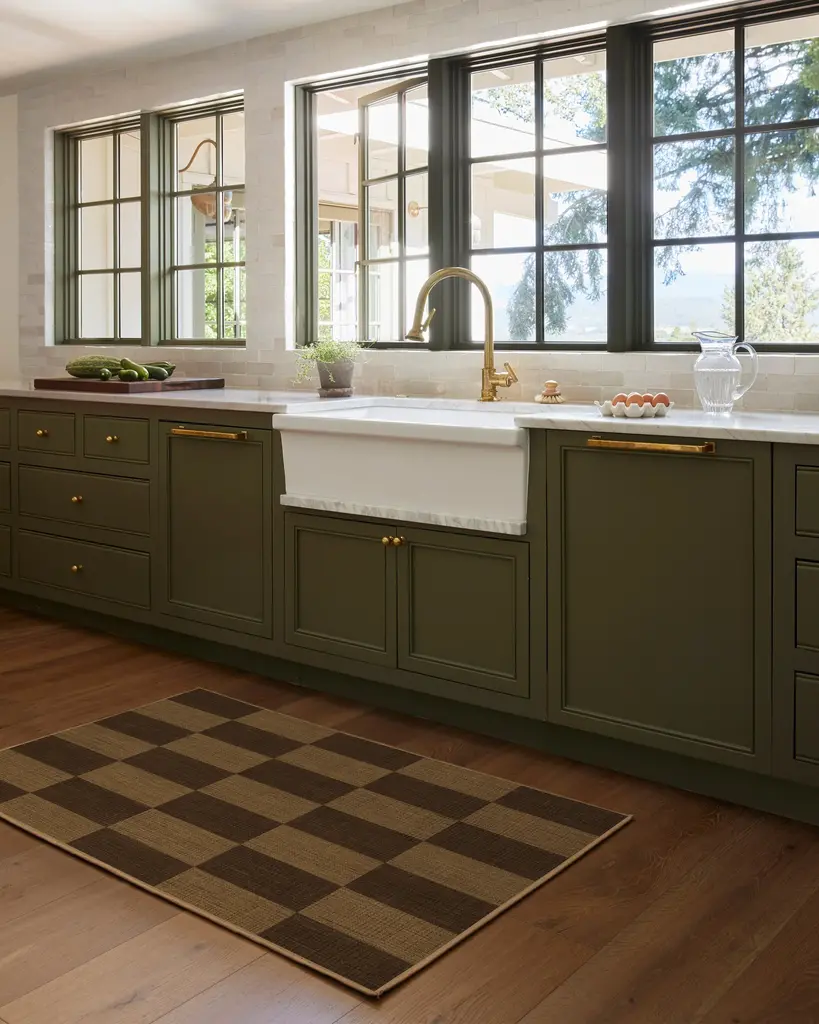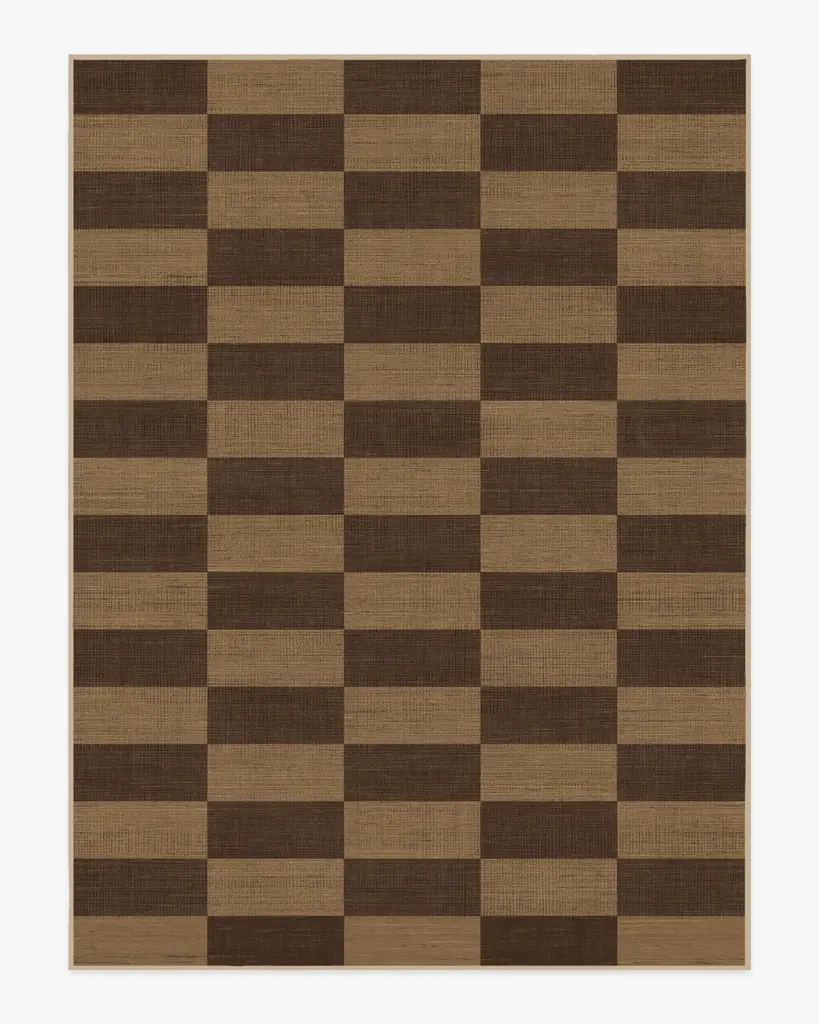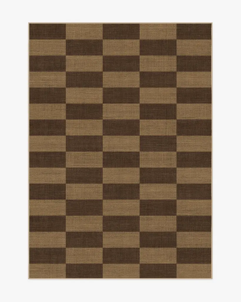 Our Architectural Digest Yates Check Brown Rug, designed by Light and Dwell, remixes classic elegance with a modern twist. Its rectangular, checkered design boasts lush textures, while the natural imperfections add character to its structured appearance. The rich chocolate brown hues stand out against a warm sand background. The woven jute-like material is made from up to 180 recycled plastic bottles per rug, recycled and virgin polyester, and polyurethane that won't shed or fray. Water-resistant, stain-resistant, and machine-washable. Rug colors may vary slightly according to your device and the lighting in your space.