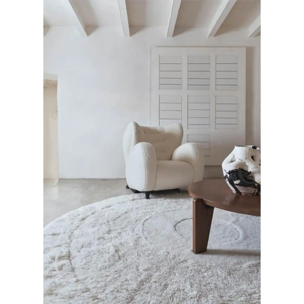 Arctic Circle Modern White Wool Shag Washable Rug - 8'2" Round