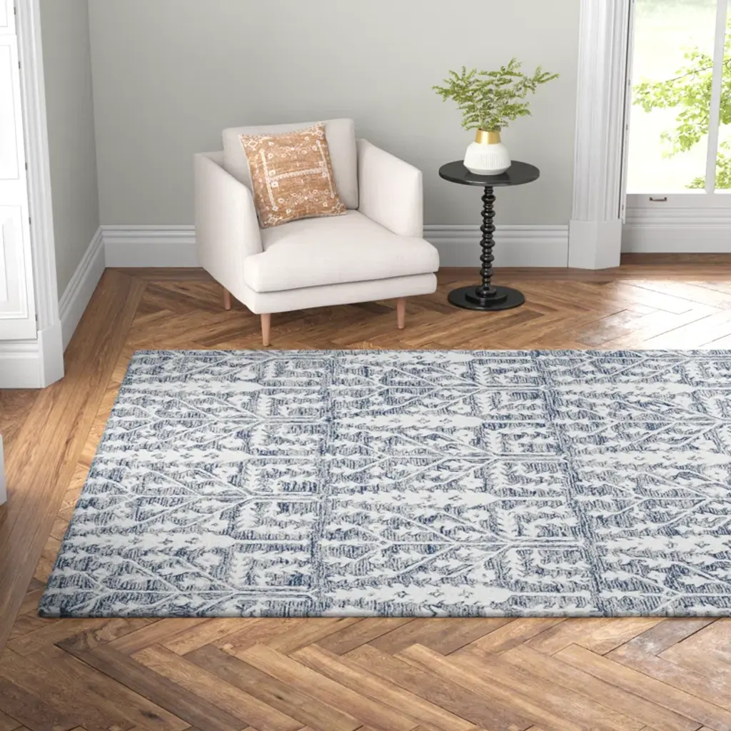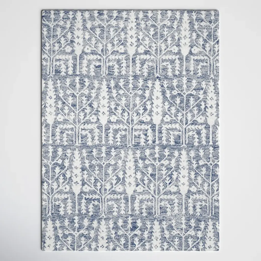 Add a cozy yet elevated touch to your space with this denim-hued area rug. We love how the subtle tree pattern adds a whimsical accent to your living room, nursery, and beyond, while the soft (and timeless) color palette makes for effortless mixing and matching with your decor. Hand-tufted from wool, this rug is naturally-durable. Plus, the high pile makes it perfect for stretching out on the floor or sinking your toes into as you hop out of bed.