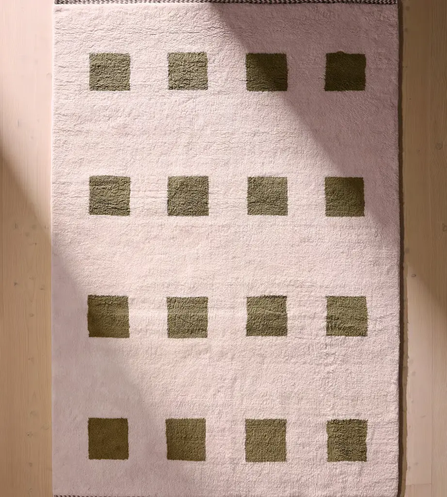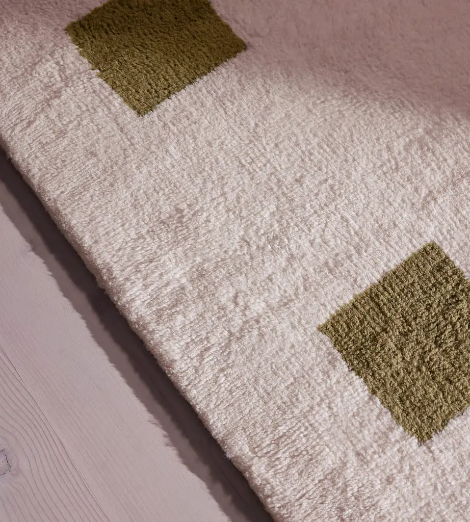 Our Arcus design is a nod to 1970s-era shag pile rugs. Hand-knotted by skilled artisans in India with 19 knots per square inch, it has a long New Zealand wool pile, which is warm and extremely soft underfoot, making it ideal for your first step out of bed or near the sofa. The repetitive square pattern takes influences from the architectural shapes and colour palette of Soho House Rome.