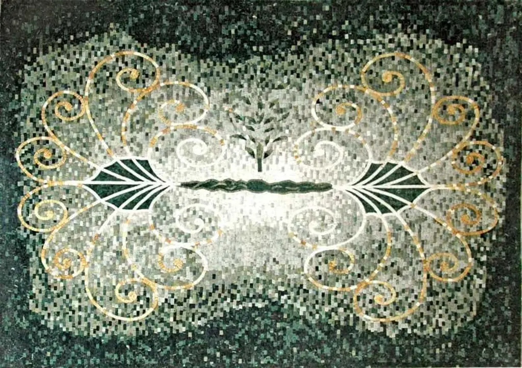 Transform your living space with the stunning Area Rug Floor Mosaic - Palma, a captivating piece designed to elevate the aesthetic of any room. This exquisite mosaic is not just a rug; it’s a statement of style that complements your natural stone floor beautifully. The Area Rug Floor Mosaic - Palma features a mesmerizing design of curly golden palm fronds gracefully set against a lush green background. This combination creates a serene yet vibrant atmosphere, reminiscent of tropical landscaping, that will surely catch the eye of anyone who enters the room. Crafted with intricate attention to detail, this mosaic can serve double duty as both a decorative tile mural and a functional area rug, making it versatile enough to fit various settings. Whether you place it in a living room, hallway, or even an outdoor patio, the Area Rug Floor Mosaic - Palma will invite warmth and an element of nature indoors.Not only does this mosaic enhance the visual appeal of your flooring, but it is also durable and easy to maintain, ensuring that it remains a stunning focal point in your home for years to come. Its unique design allows it to blend seamlessly with various decor styles, making it a perfect addition to both contemporary and traditional spaces.Elevate your home’s ambiance and add a touch of the exotic with the Area Rug Floor Mosaic - Palma. Experience the beauty of nature within your interior design; embrace the allure of palm fronds and the tranquility of lush greenery with this exceptional area rug floor mosaic. Transform your space today!
