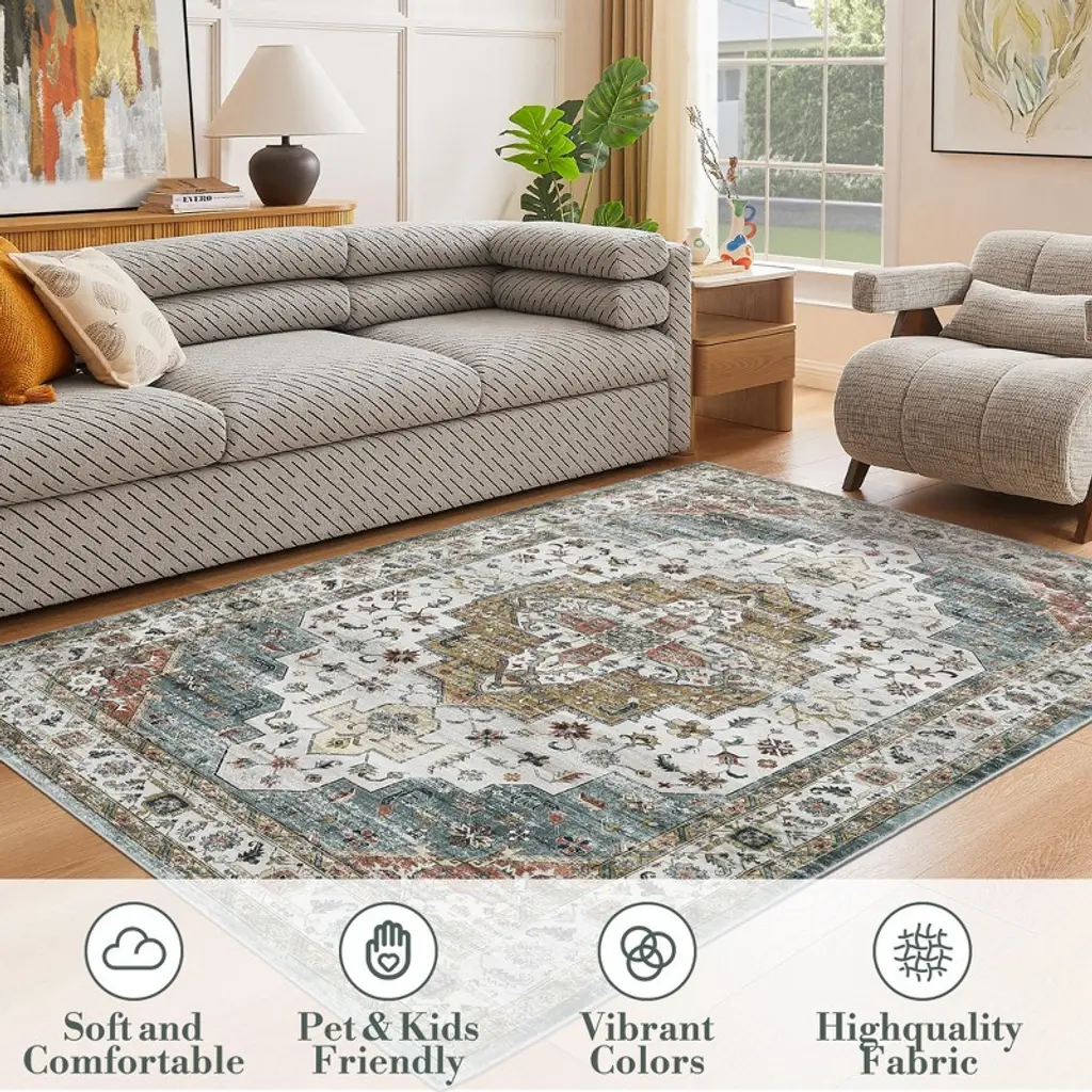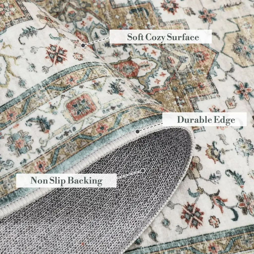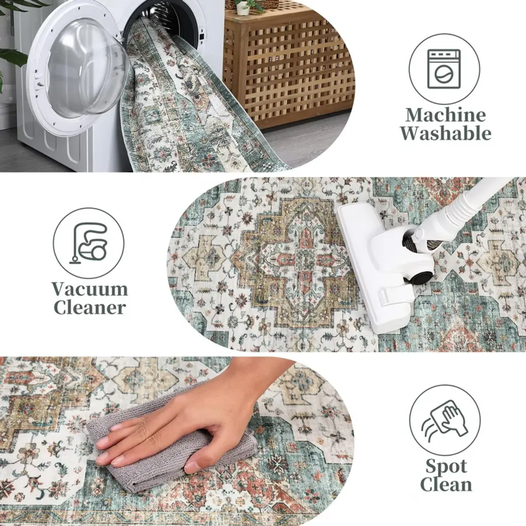 Transform your space with our luxurious machine washable vintage printed area rug, featuring a super soft velvet surface, stunning intricate patterns, and a non-slip backing for ultimate comfort and safety!Feature:Luxuriously soft velvet surface for ultimate comfort underfoot.Stunning vintage printed design with intricate patterns and rich colors.Long-Lasting construction from 100% non-shedding polyester.Reliable non-slip backing ensures safety on any floor surface.Easy care with machine washable, stain-resistant low pile design.Specification:Material: 100% PolyesterColor: Brown/Camel Green/GreenSize: 2x6 FT/4x6 FT/5x7 FT/ 8X10 FT/9X12 FT/10X13 FTApplication: Bedroom/Living Room/Hallway/Office/LaundryCleaning Guidelines:For effective care of our carpets, we recommend the following:Small-Sized Carpets: These are foldable and can be machine washed for convenient cleaning.Large-Sized Carpets: For these, we advise using a vacuum cleaner for regular maintenance. Vacuum in the direction of the fibers to prevent snagging and to make cleaning more efficient. Additionally, avoid placing the carpets in direct sunlight to preserve their color and quality.Note:When Area rug arrives, there may be temporary creases, you can roll the washable rug in the opposite direction and lay it flat on the floor while applying pressure to the carpet, the creases will disappear completely in a few days. Measure your space and choose the appropriate size. Ensure that the carpet can cover the area you want and coordinate with the surrounding furniture.