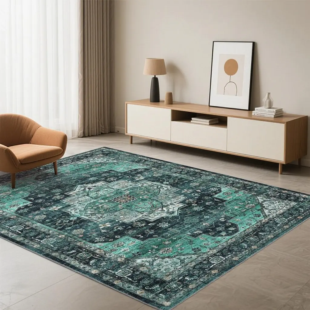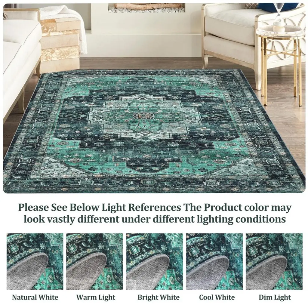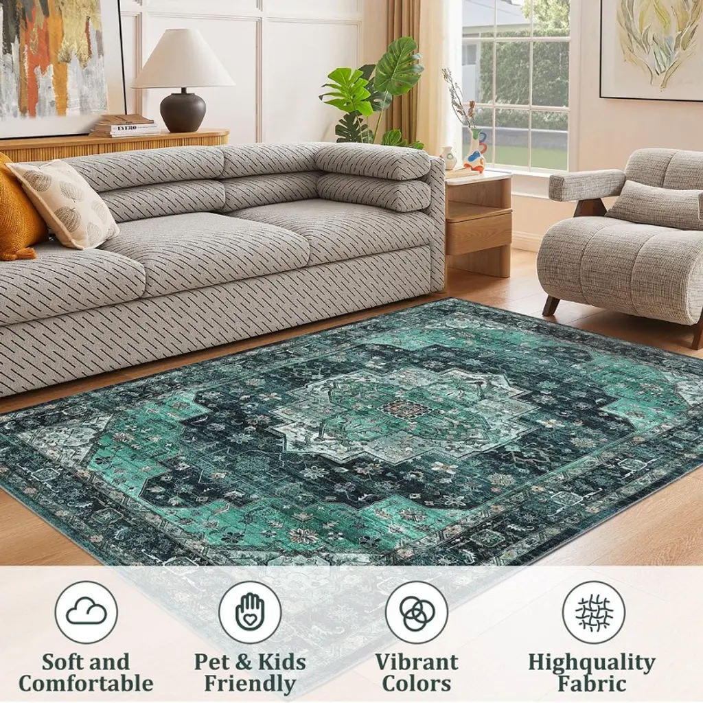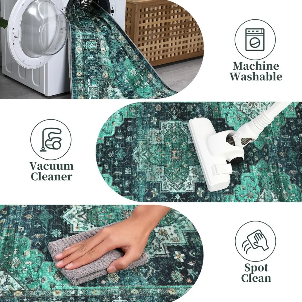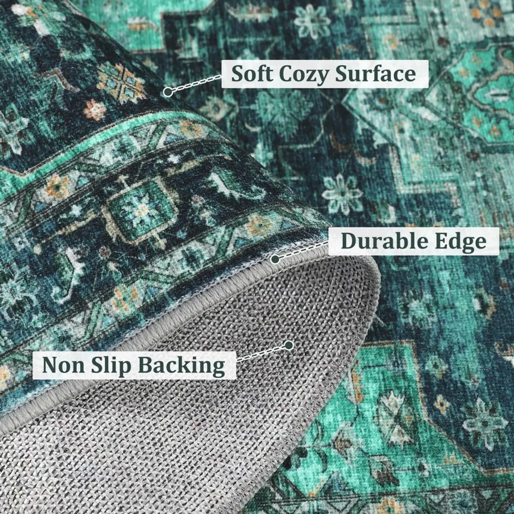 Transform your space with our luxurious machine washable vintage printed area rug, featuring a super soft velvet surface, stunning intricate patterns, and a non-slip backing for ultimate comfort and safety!Feature:Luxuriously soft velvet surface for ultimate comfort underfoot.Stunning vintage printed design with intricate patterns and rich colors.Long-Lasting construction from 100% non-shedding polyester.Reliable non-slip backing ensures safety on any floor surface.Easy care with machine washable, stain-resistant low pile design.Specification:Material: 100% PolyesterColor: Brown/Camel Green/GreenSize: 2x6 FT/4x6 FT/5x7 FT/ 8X10 FT/9X12 FT/10X13 FTApplication: Bedroom/Living Room/Hallway/Office/LaundryCleaning Guidelines:For effective care of our carpets, we recommend the following:Small-Sized Carpets: These are foldable and can be machine washed for convenient cleaning.Large-Sized Carpets: For these, we advise using a vacuum cleaner for regular maintenance. Vacuum in the direction of the fibers to prevent snagging and to make cleaning more efficient. Additionally, avoid placing the carpets in direct sunlight to preserve their color and quality.Note:When Area rug arrives, there may be temporary creases, you can roll the washable rug in the opposite direction and lay it flat on the floor while applying pressure to the carpet, the creases will disappear completely in a few days. Measure your space and choose the appropriate size. Ensure that the carpet can cover the area you want and coordinate with the surrounding furniture.