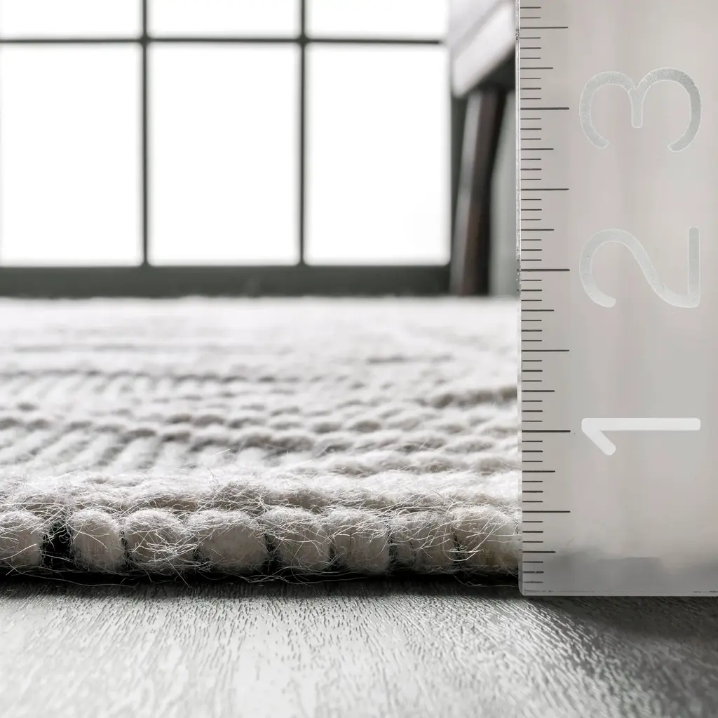 Elevate the casual allure of your space by pairing it with this bold design. A modern trellis pattern brings the perfect edge to your living space. This sophisticated linework captures the eyes of anyone who sees it. Crafted of soft wool and cotton fibers, this area rug promises a luscious texture underfoot. With our wide assortment of colors and sizes, make the most of your time at home with our pet-friendly and easy to clean area rugs.
