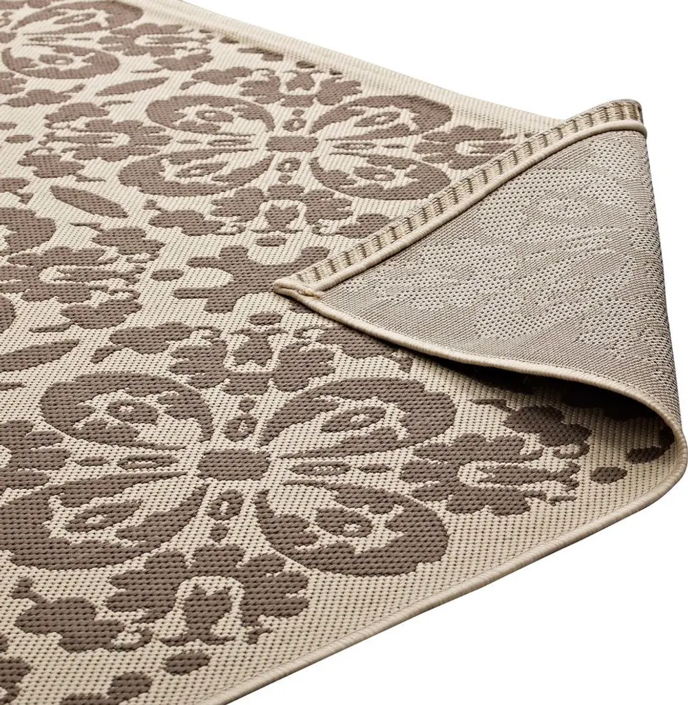 Make a sophisticated statement with the Ariana Vintage Floral Trellis Indoor and Outdoor Area Rug. Patterned with an elegant design, Ariana is a durable and soft machine-woven polypropylene rug that offers wide-ranging support. Featuring a vintage floral lattice design with a low pile weave and gripping rubber bottom, this all-weather area rug is a perfect addition to the outdoor patio, porch, deck, or inside the house in the living room, bedroom, kitchen or dining room. Ariana is a family-friendly fade and stain resistant rug with easy maintenance. Hose down or vacuum periodically. Create a contemporary play area for kids and pets in high-traffic areas while protecting your floor from spills and heavy furniture with this carefree decor solution. Set Includes:One - Ariana Vintage Floral Trellis 5x8 Indoor and Outdoor Area Rug Overall Product Dimensions: 90.5"L x 63"W x 0.5"H