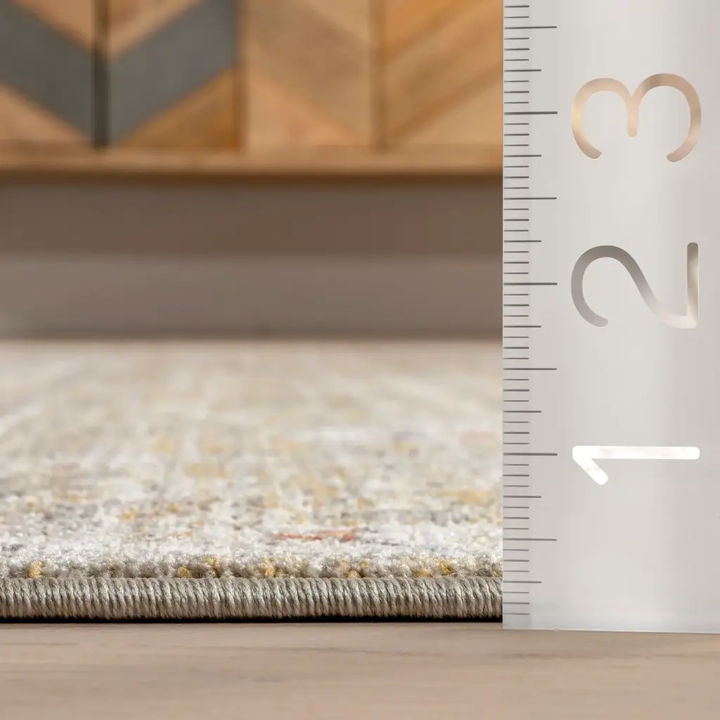Seamlessly combine vintage charm with contemporary allure by adding this unique rug to your living space. With its slight luster, high-quality yarn, and high-density pile, this rug is a testament to superior craftsmanship and luxurious comfort. Enjoy a statement piece that adds character and sophistication to any space. Whether placed in a living room, bedroom, or dining area, it becomes an instant focal point, exuding a sense of grandeur and elegance.