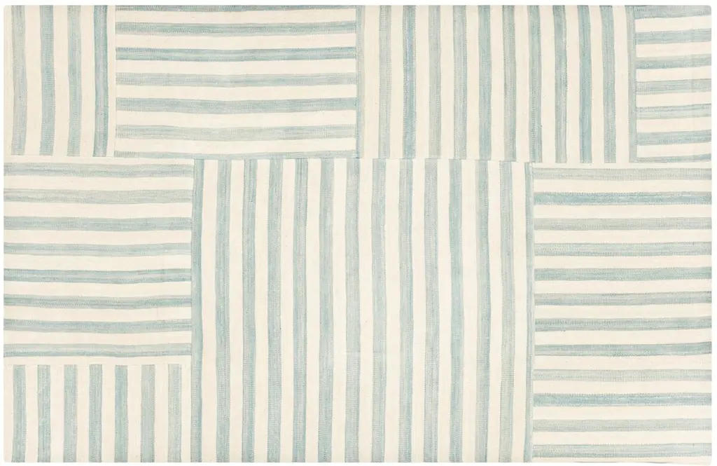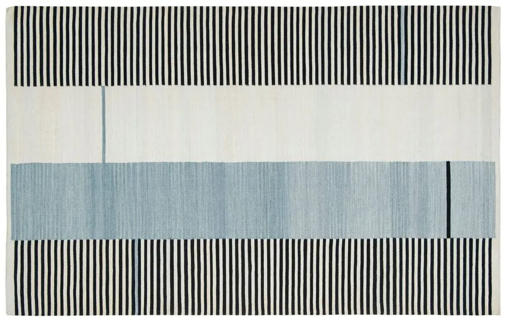 Bring chic, contemporary style to your bedroom, living room, or office with this durable flat-weave rug that is rendered in hues of blue and ivory. A rug pad is recommended to keep this design securely in place.