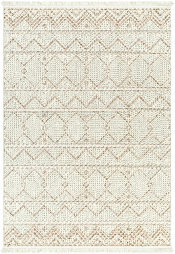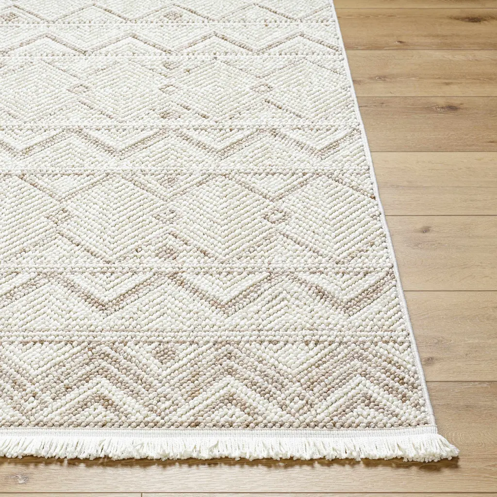 Collection: Armen Colors: Beige, Sage, Medium Brown, Gray Construction: Machine Woven Material: 100% Polyester Pile: Low Pile Pile Height: 0.1" Styles: Transitional,Bohemian Made In: Turkey Thickness: 0.14" Fringe Length: 1.97" Price Range: $$$$$ (Affordable)