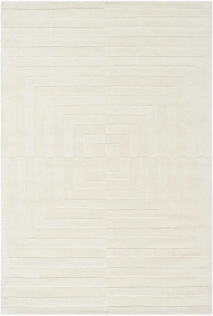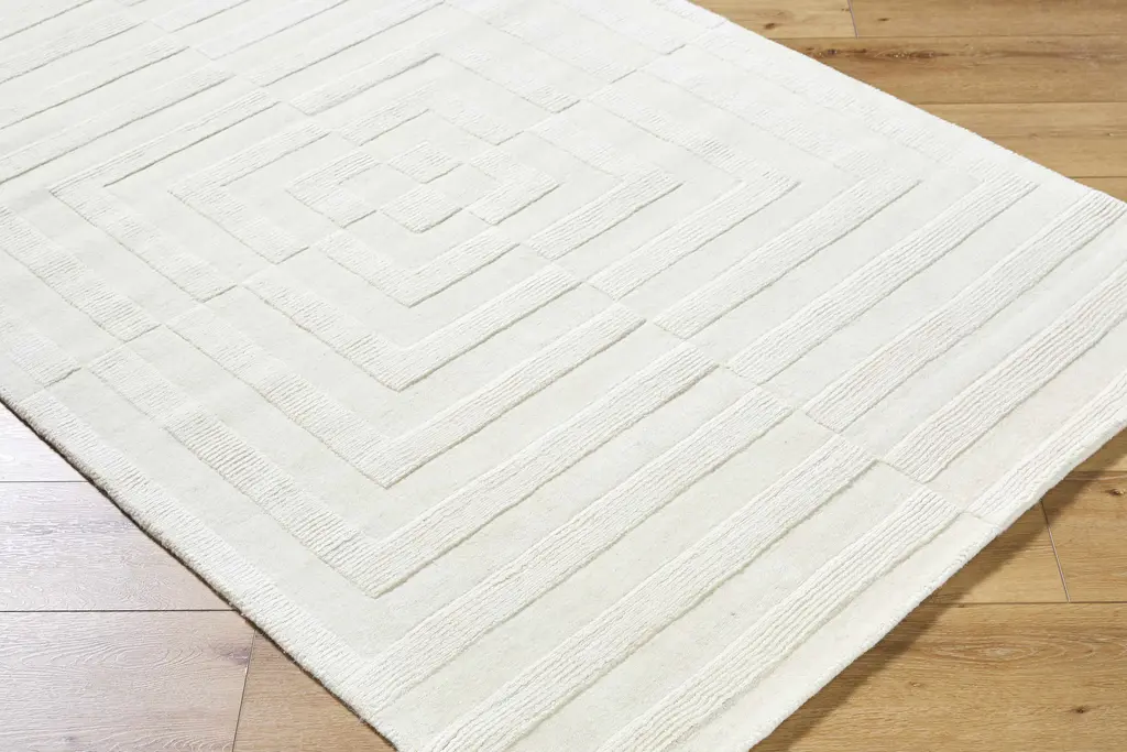 Collection: Armina Colors: Cream Construction: Hand Loomed Material: Face: 100% Wool / Warp: 100% Cotton Pile: Medium Pile Pile Height: 0.4" Styles: Contemporary Backing: Canvas Made In: India Thickness: 0.55" Price Range: $$$$$ (Affordable)