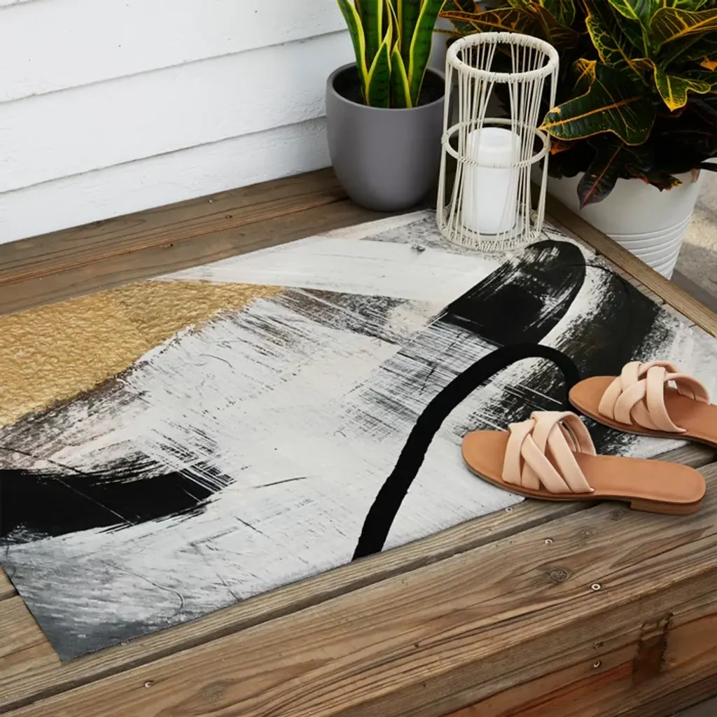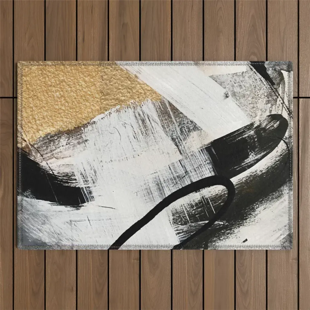 Armor [9]: A Minimal Abstract Piece In Black White And Gold By Alyssa Hamilton Art Outdoor Rug
